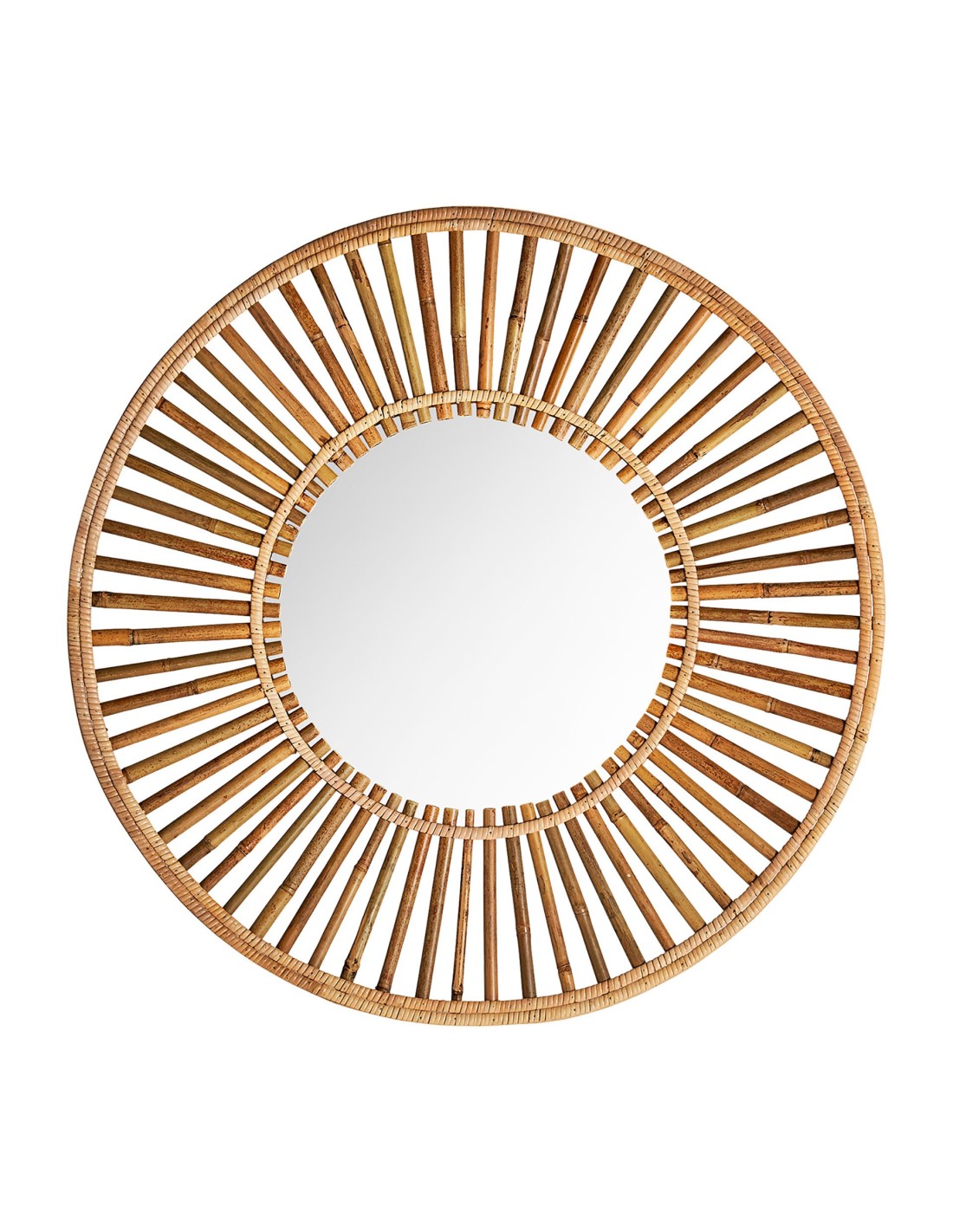 Espejo redondo Arteaga de estilo Contemporáneo, fabricado en bambú en color marrón, combinado con espejo.