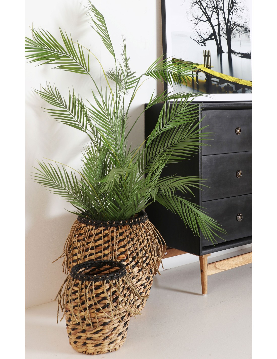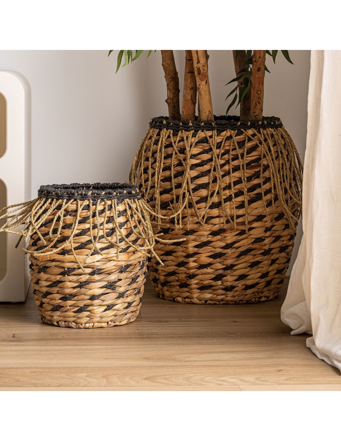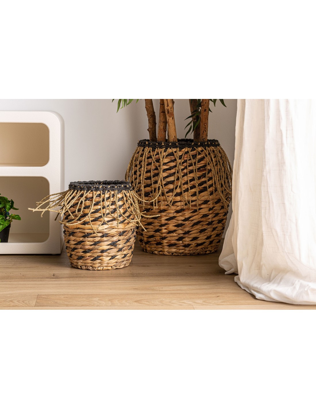 Set 2 Cestos BLAIR, Fibra Natural / Negro, Natural - Kodu Home Design