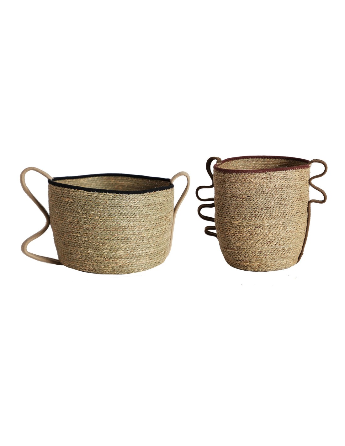 Set 2 Cestos WICA, Fibra Natural / Negro, Natural - Kodu Home Design