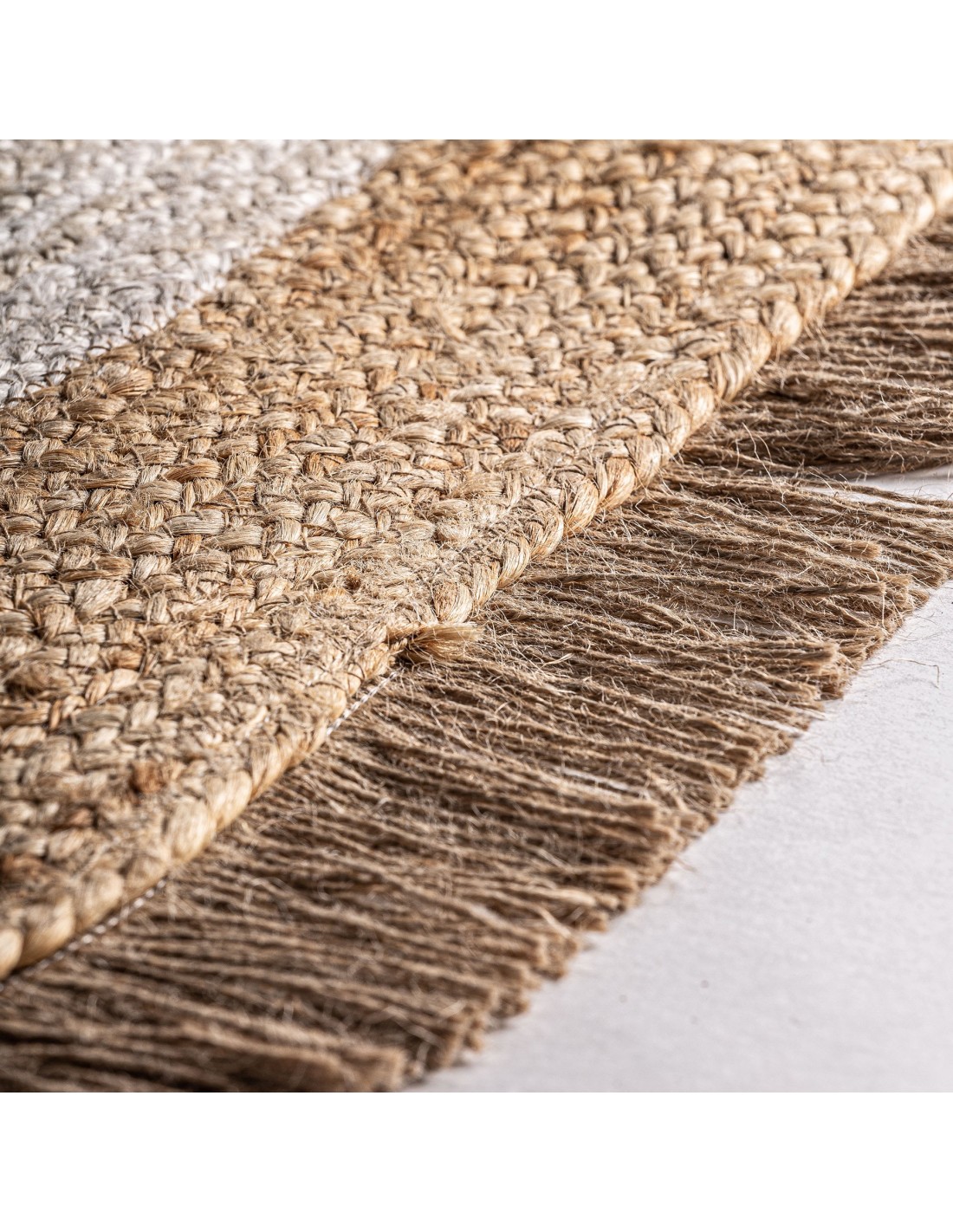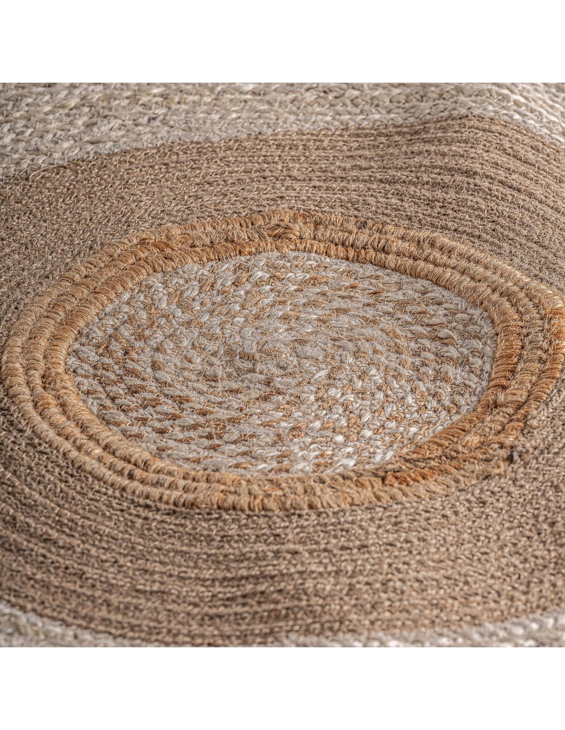 Alfombra redonda Ela de estilo Boho, fabricado en yute en color tonos en marrón.