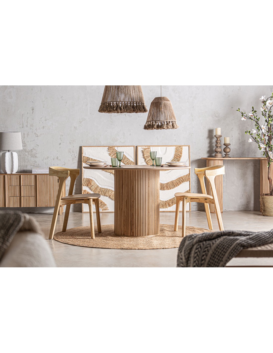 Alfombra redonda Ebba, en color marrón, de estilo Boho. Fabricado en yute.