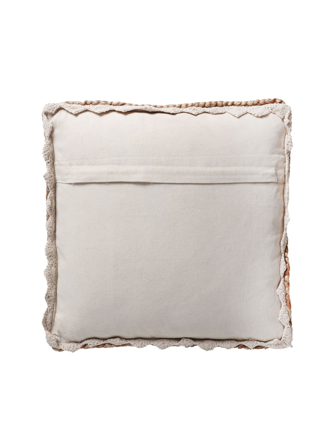Cojín cuadrado Thiesi de estilo Boho, fabricado en yute en color marrón, combinado con algodón Y poliéster.