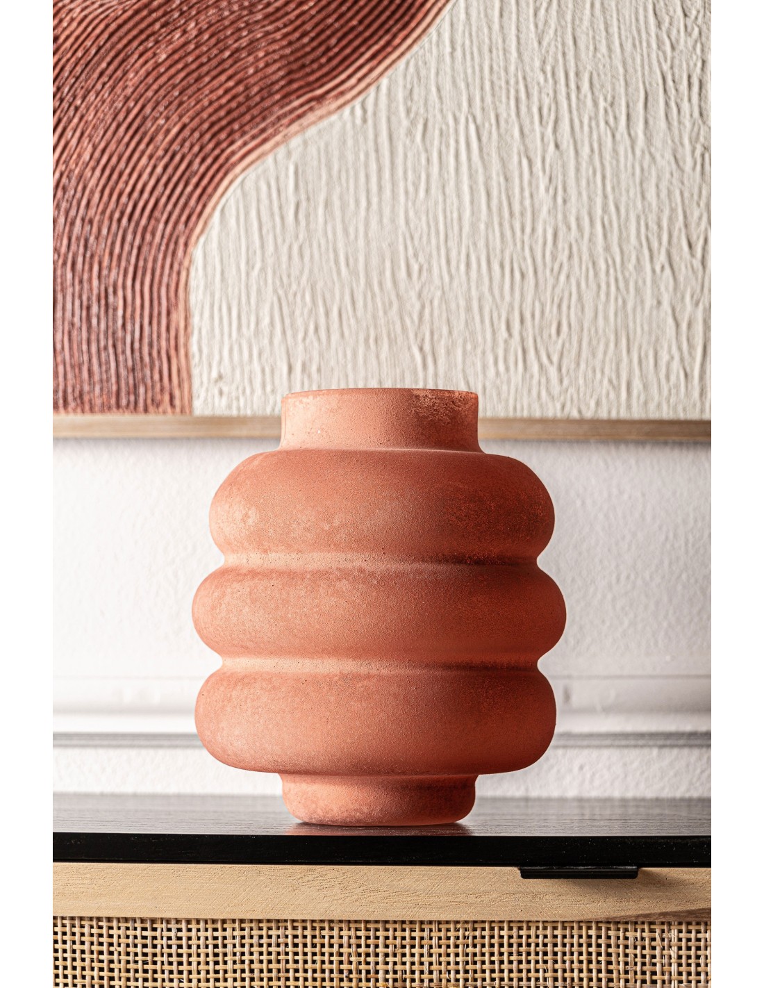 Jarrón irregular Kidha, en color naranja, de estilo Shabby Chic. Fabricado en vidrio.