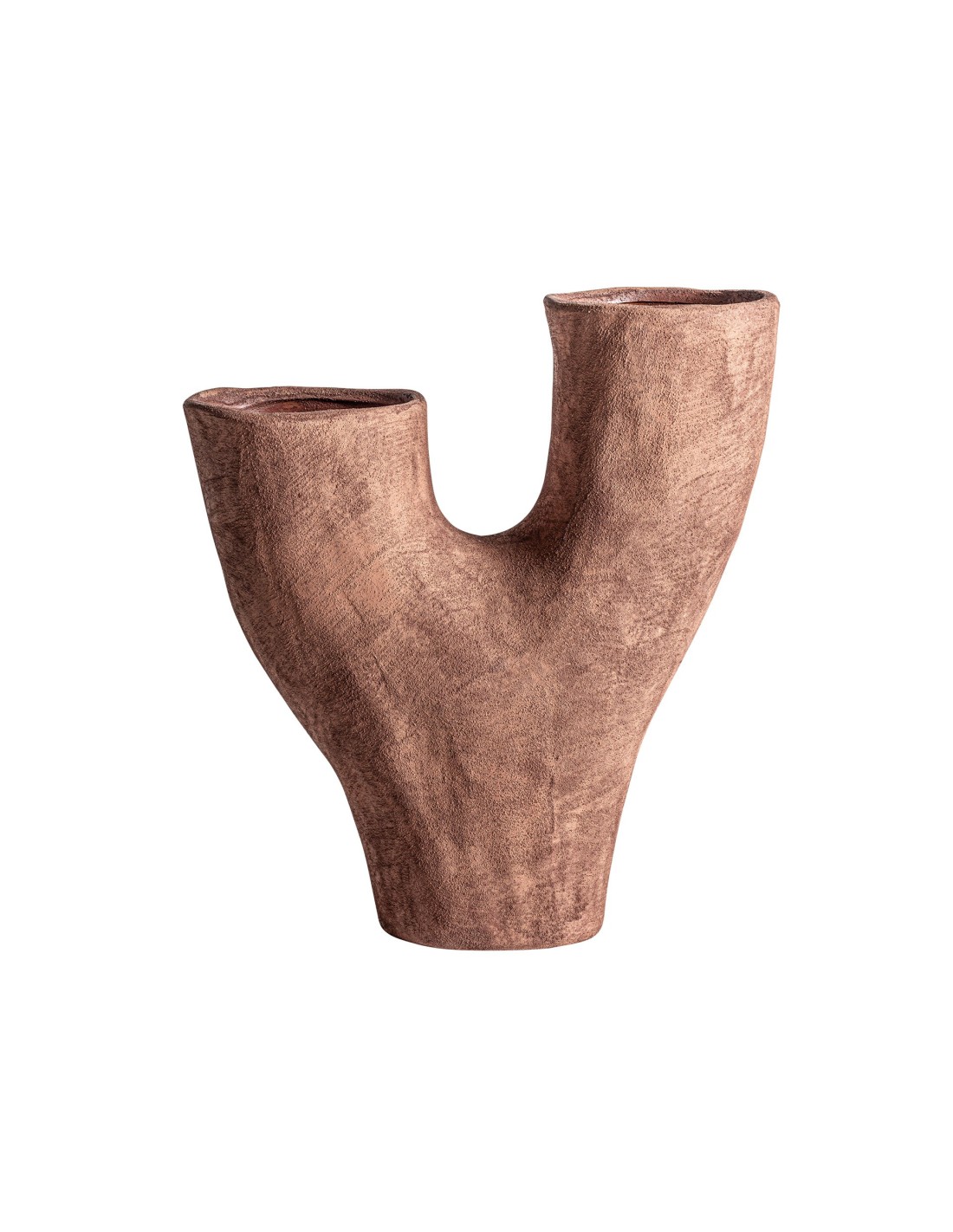 Jarrón irregular Mezin de estilo Contemporáneo, fabricado en cerámica en color marrón.