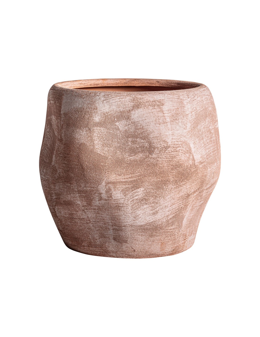 Jarrón redondo Mezin de estilo Contemporáneo, fabricado en cerámica en color marrón.