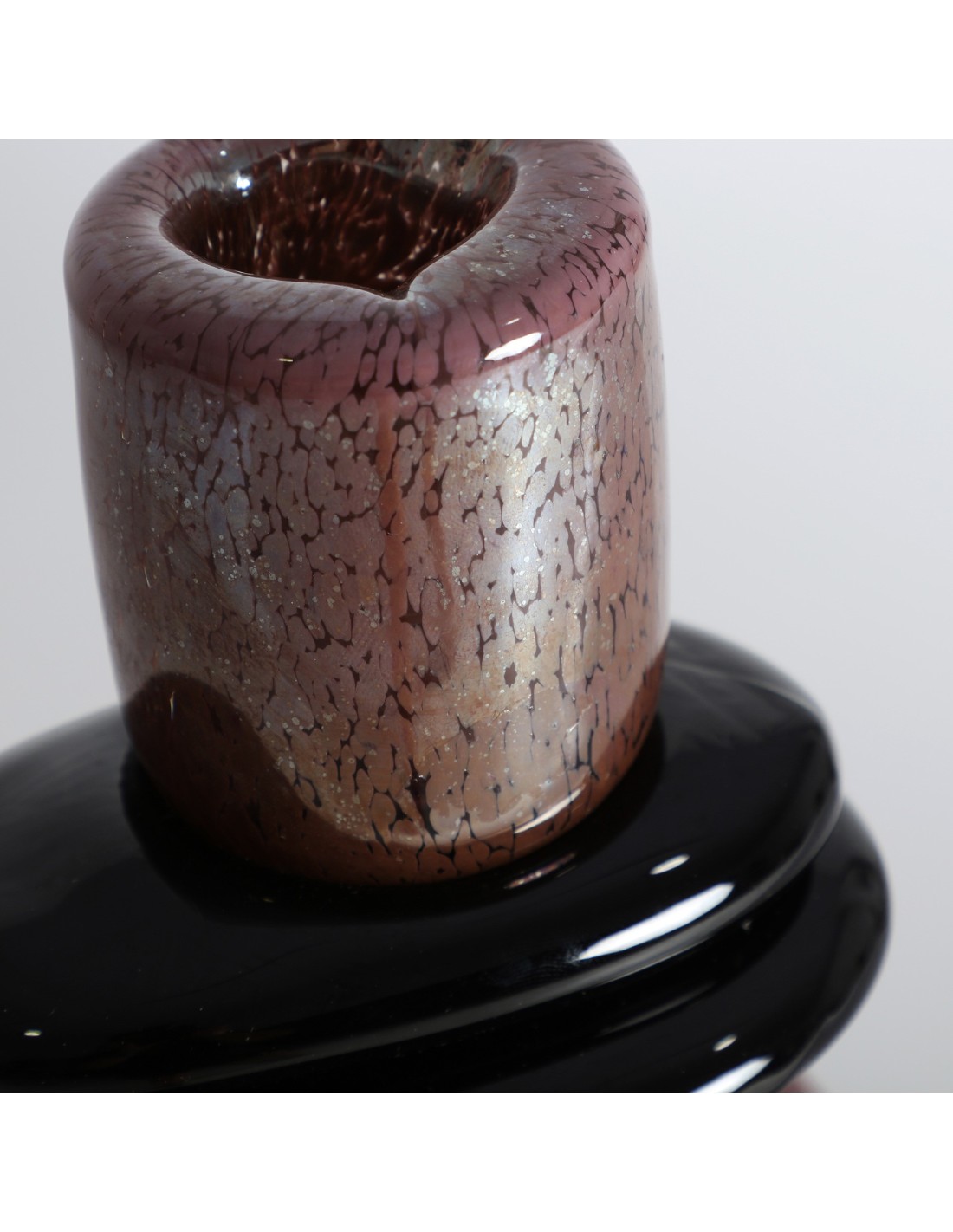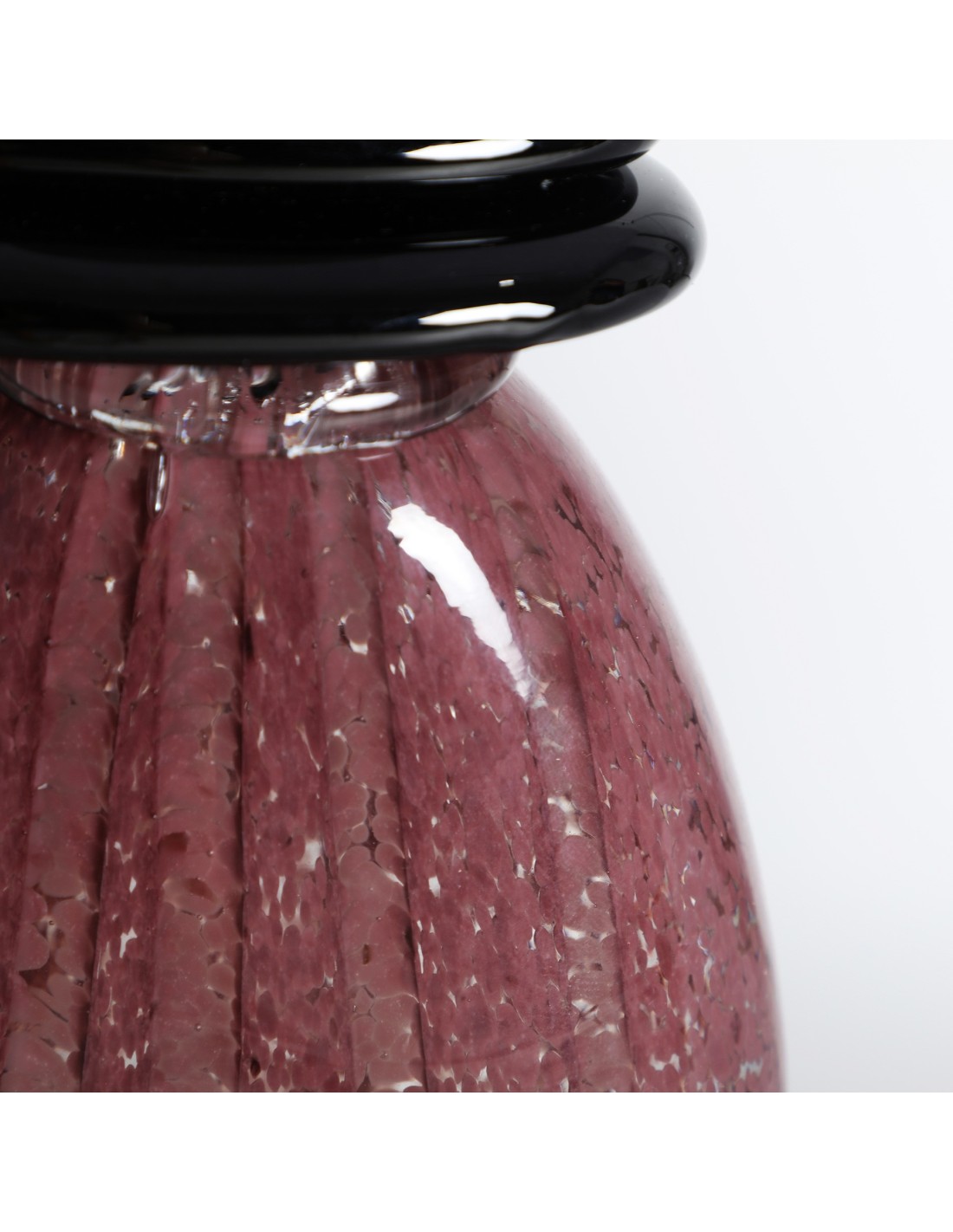 Jarrón Ruise de estilo Contemporáneo, fabricado en vidrio en color burdeos con acabado brillo en color negro.