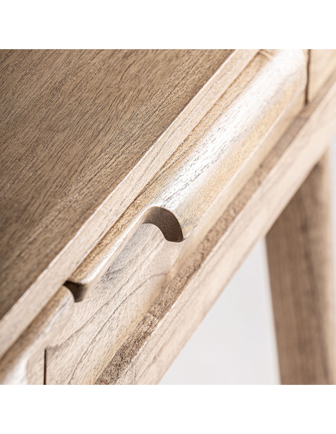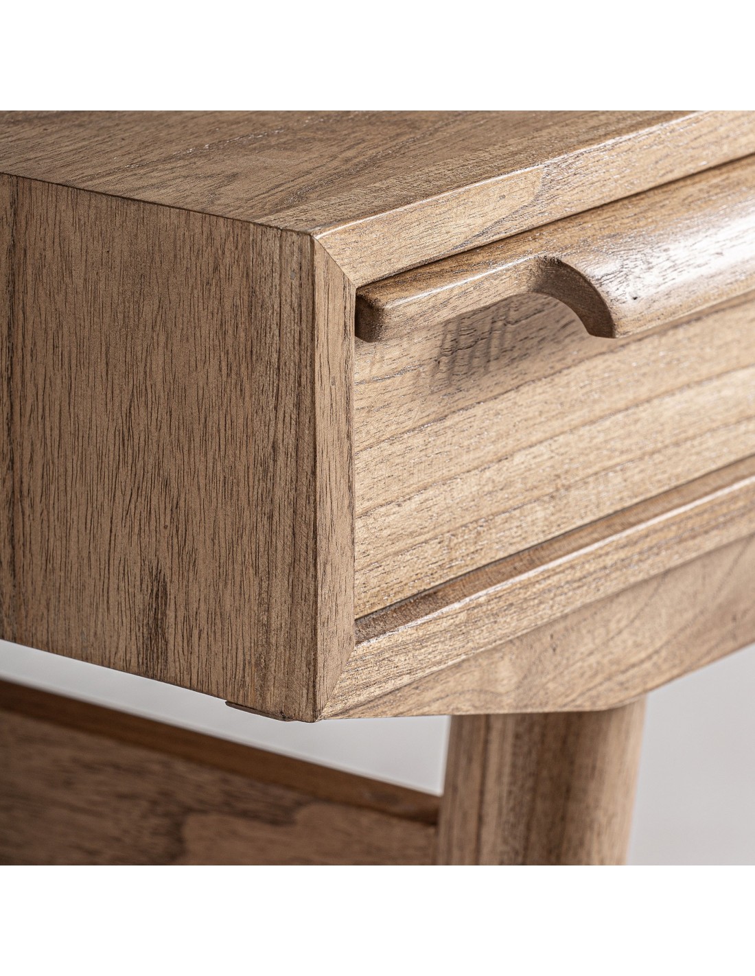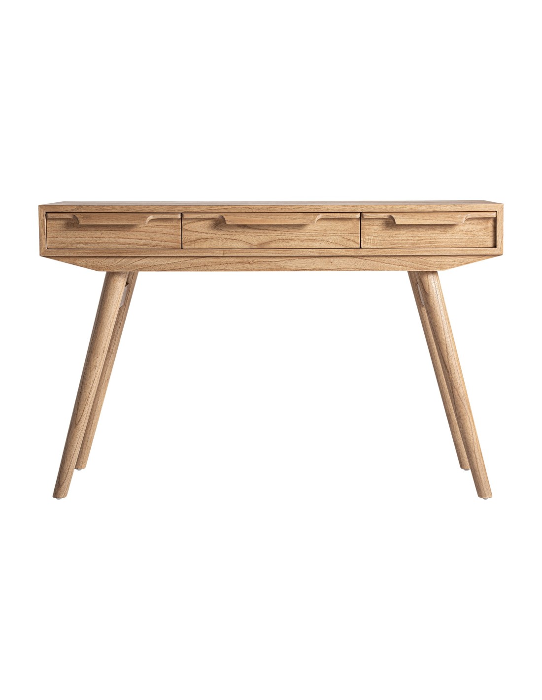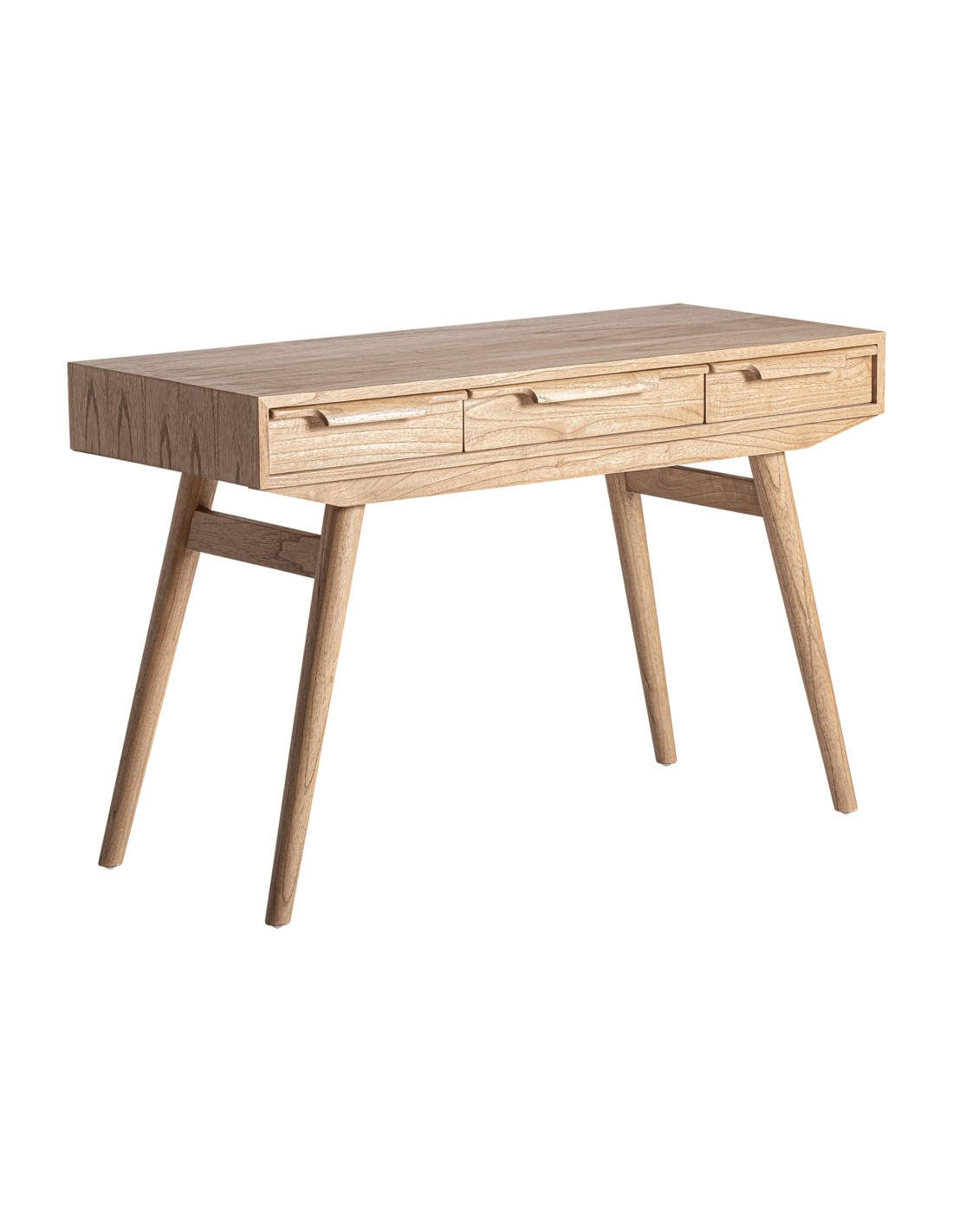 Escritorio Nyry de estilo Nórdico, fabricada en madera de mindi acabado marrón. Producto desmontable.