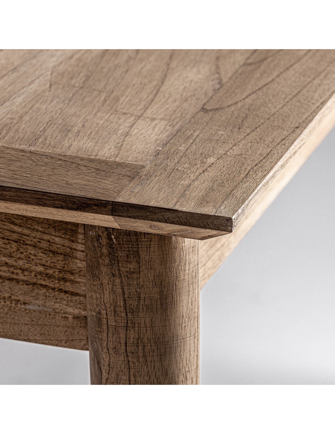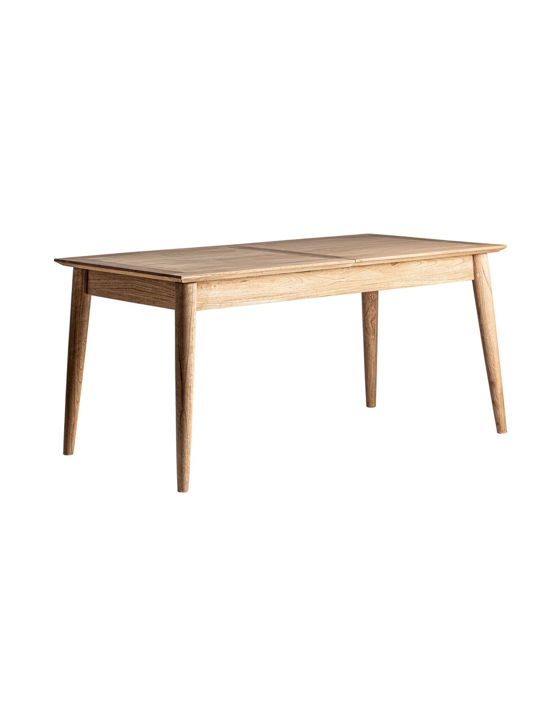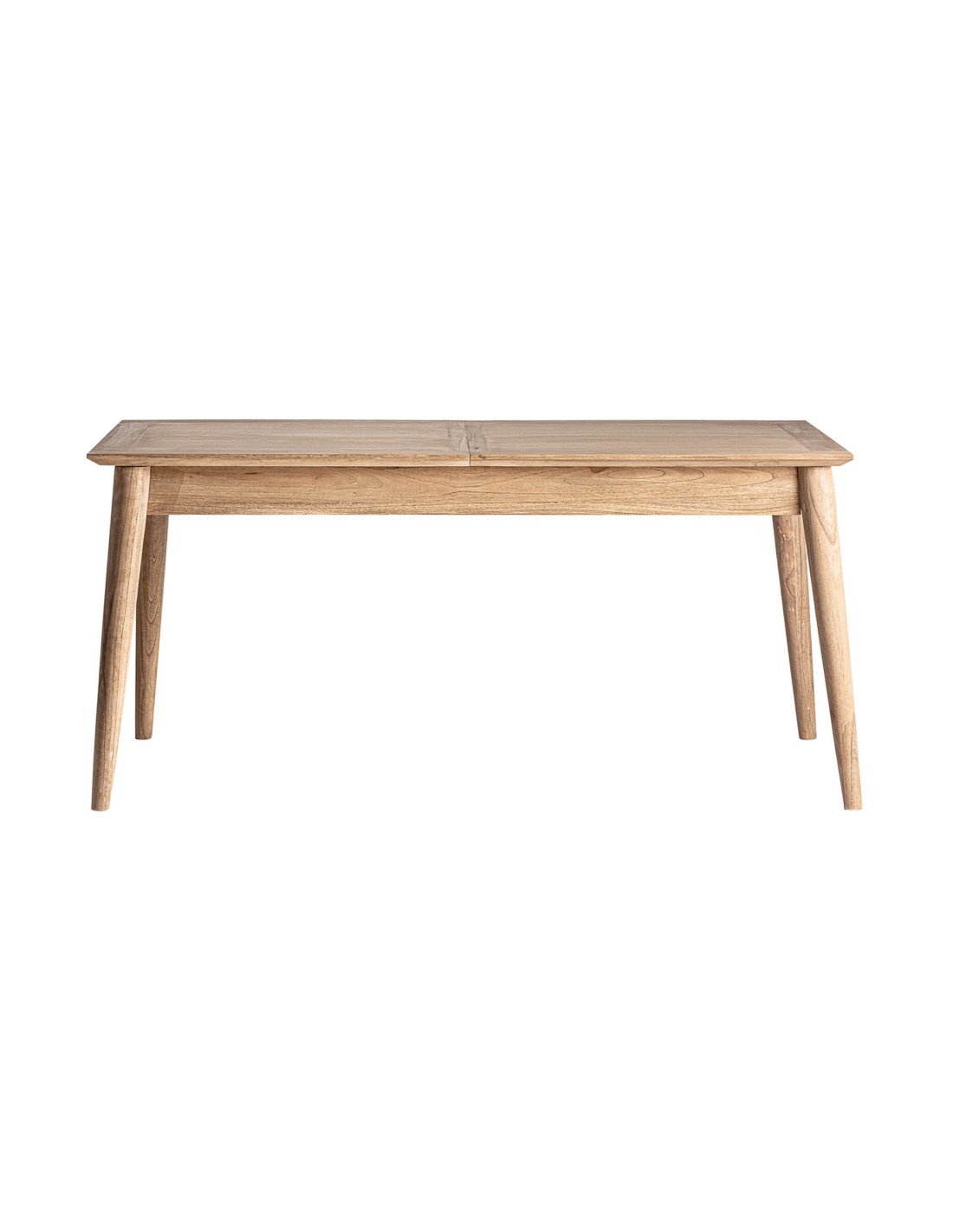 Mesa extensible rectangular Nyry de estilo Nórdico, fabricada en madera de mindi acabado marrón. Producto desmontable.