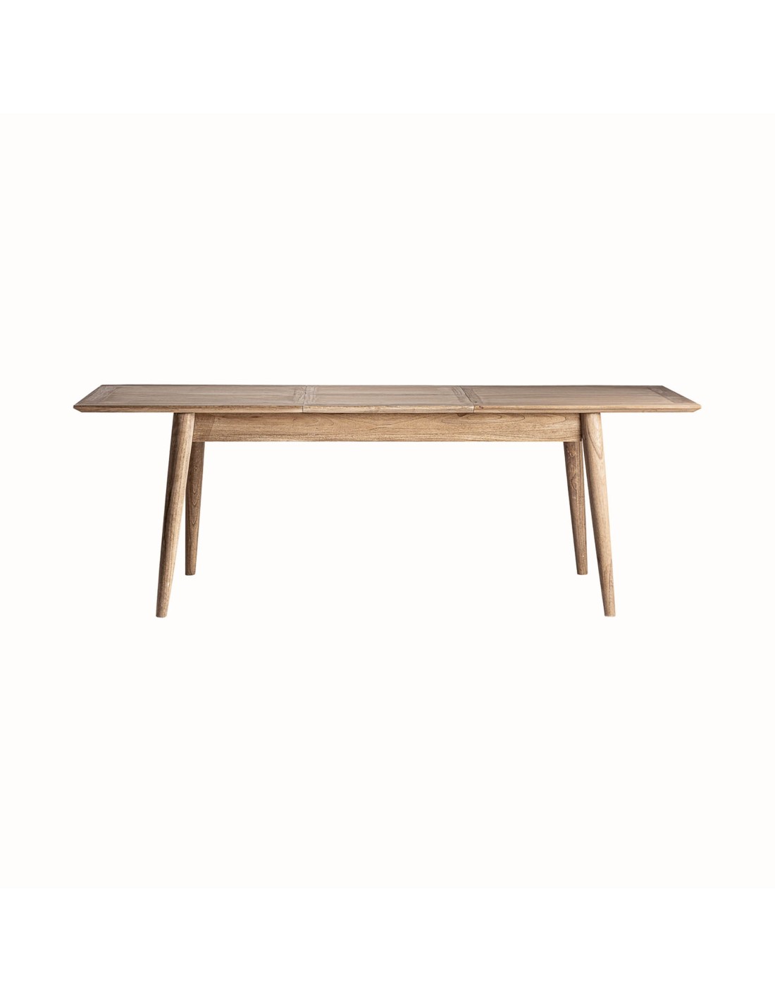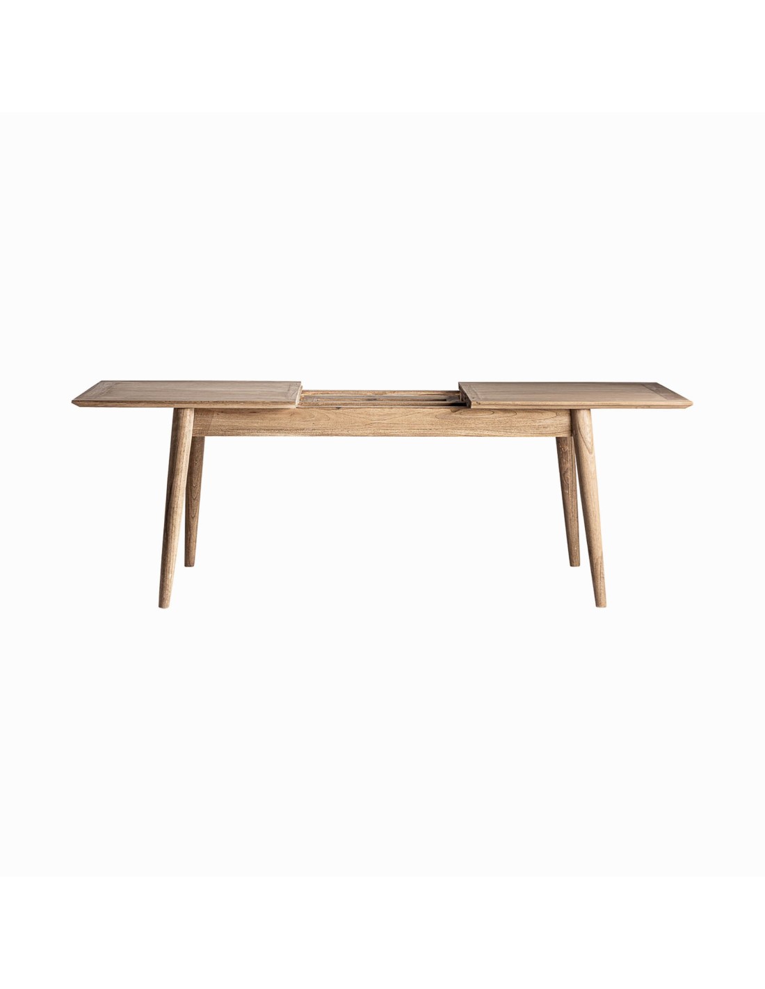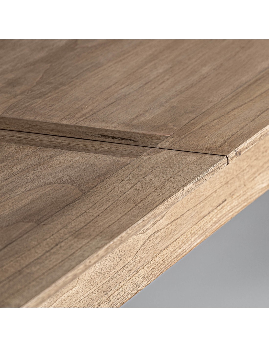 Mesa extensible rectangular Nyry de estilo Nórdico, fabricada en madera de mindi acabado marrón. Producto desmontable.