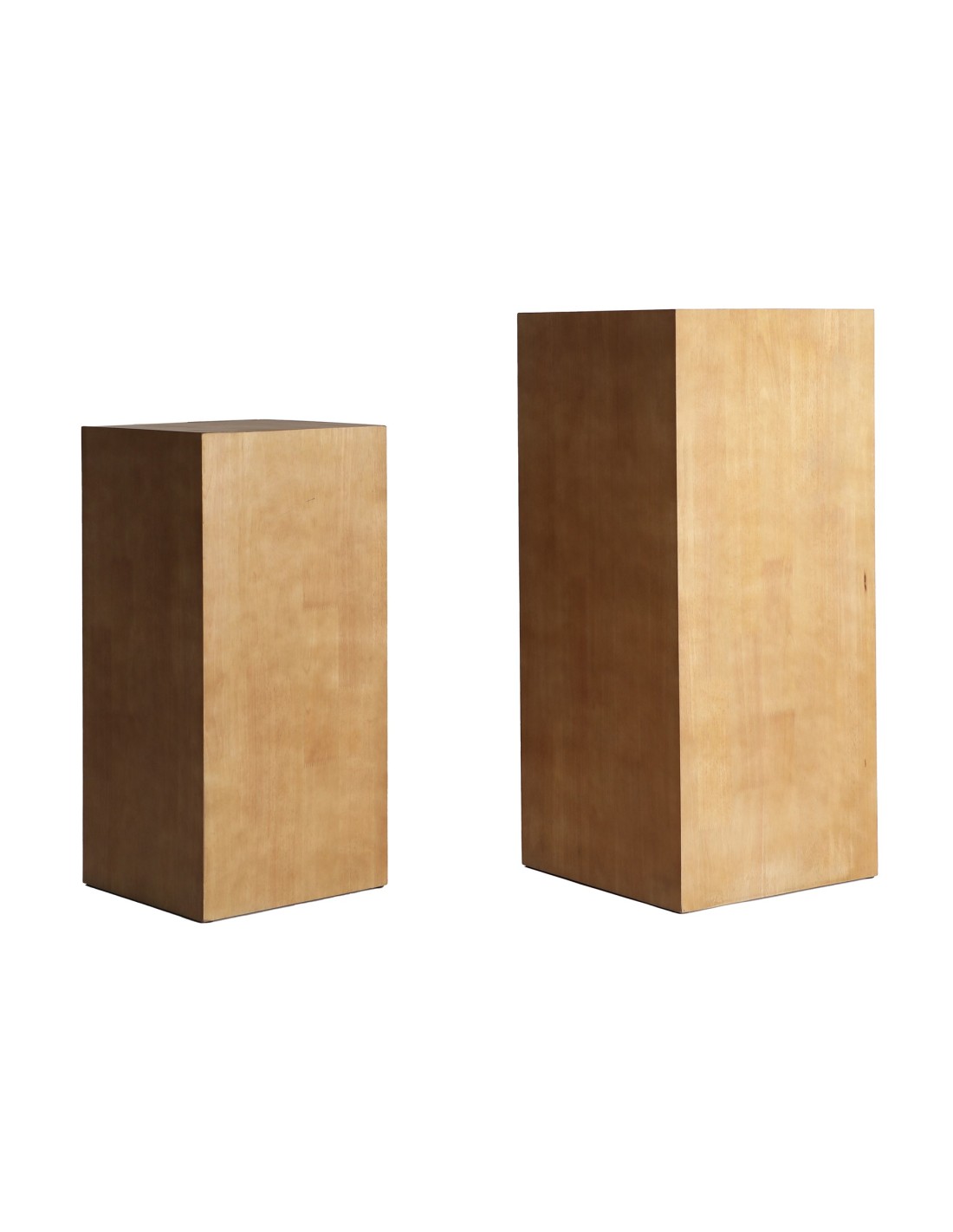 Set de 2 mesas auxiliares Peana Lecco de estilo Colonial, fabricadas en madera de abeto acabado marrón.