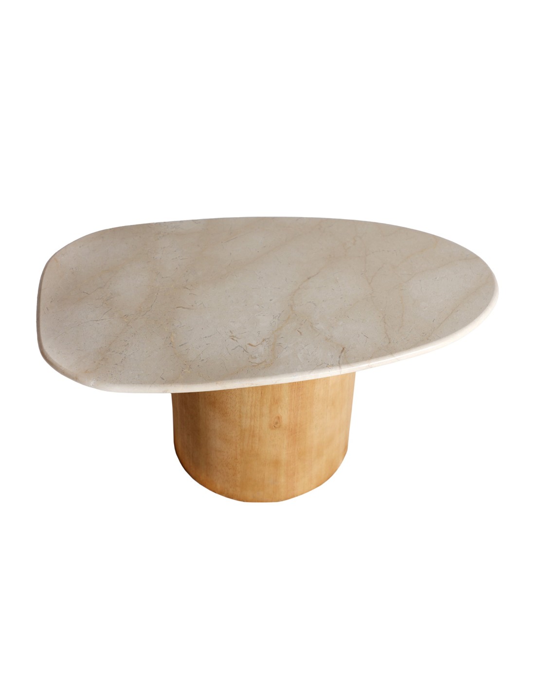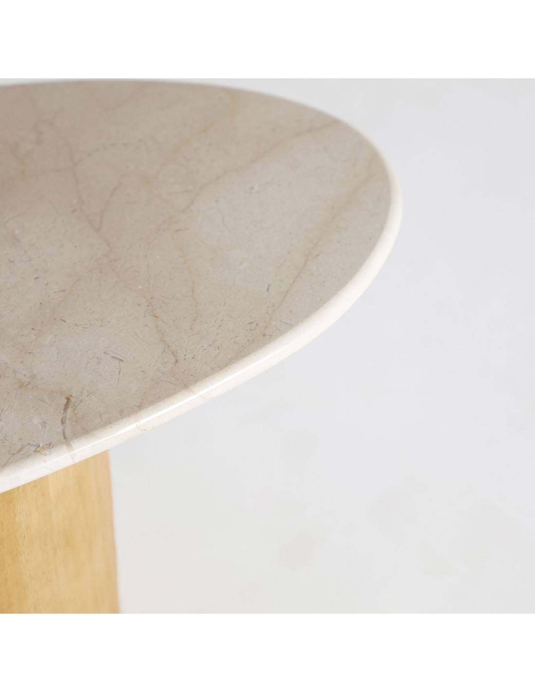 Mesa de centro redonda Lorach de estilo Art Deco. Fabricada en mármol color blanco, en combinación con madera de haya. Producto desmontable.
