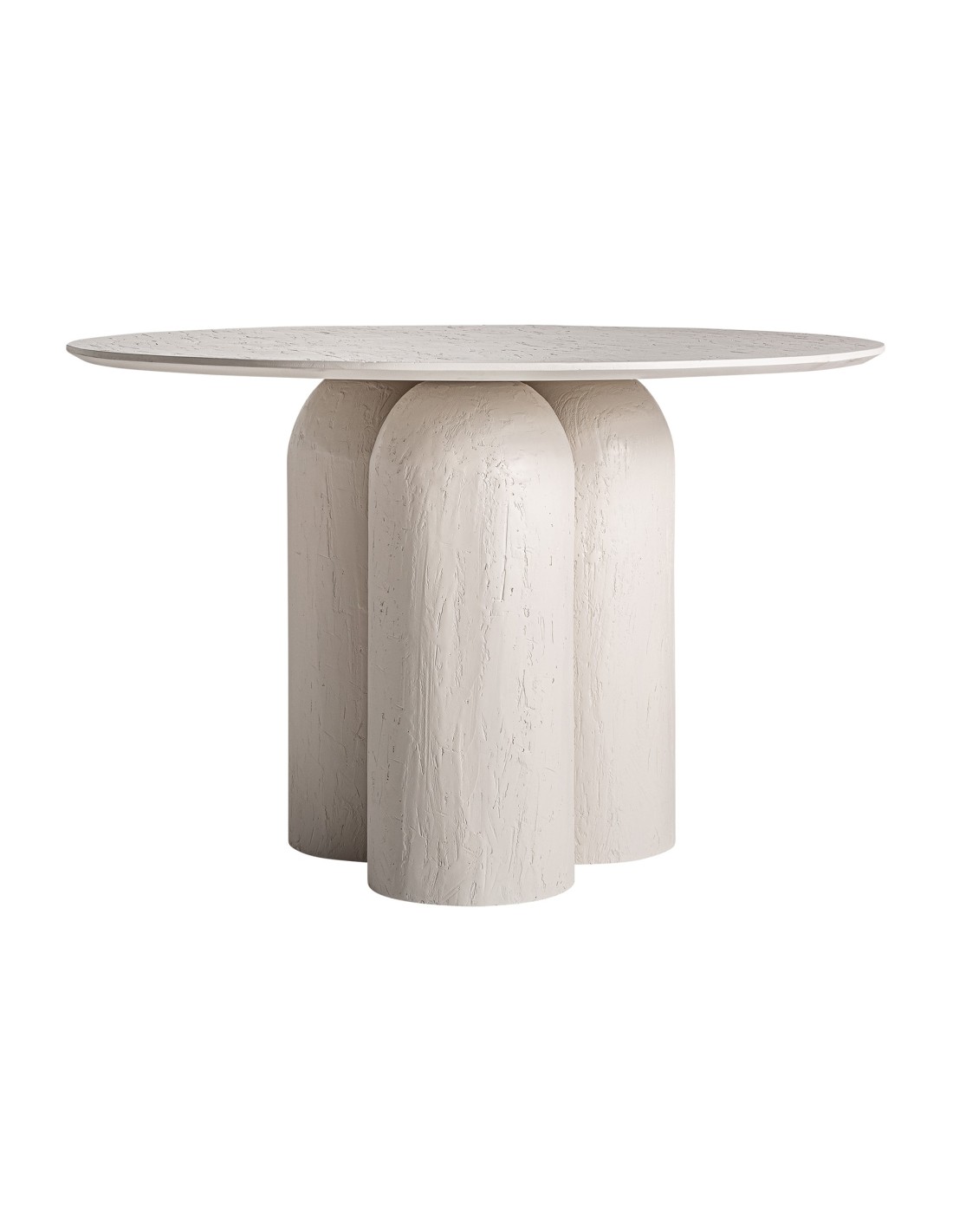 Mesa comedor redonda Inha de estilo Contemporáneo, fabricada en madera de mango acabado blanco roto.