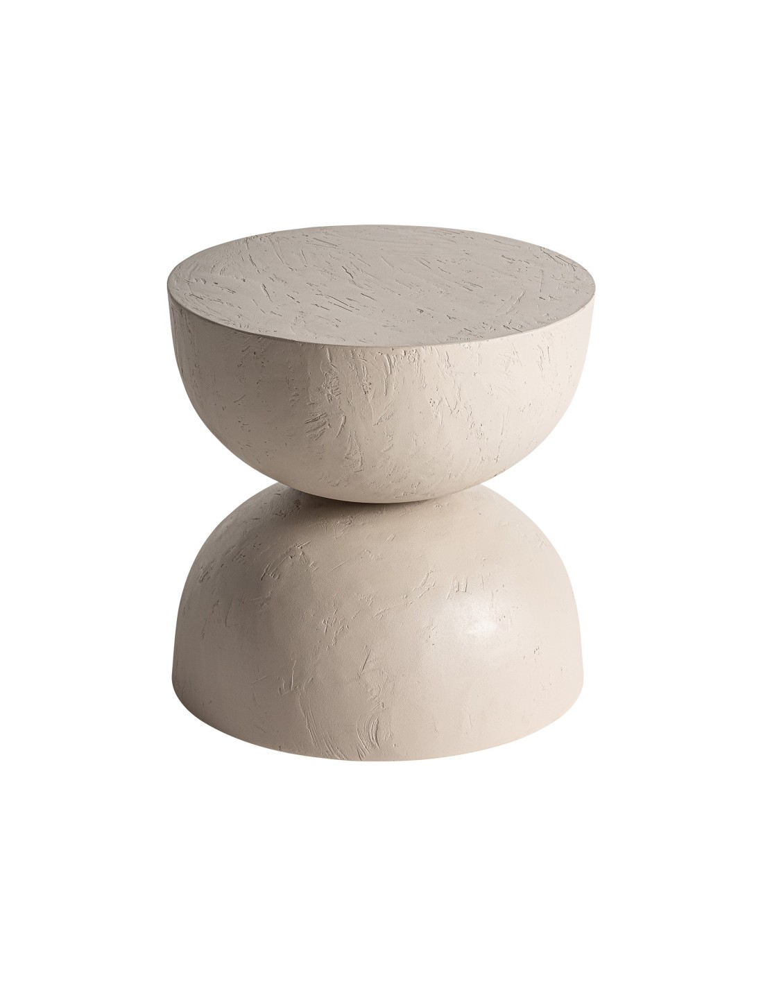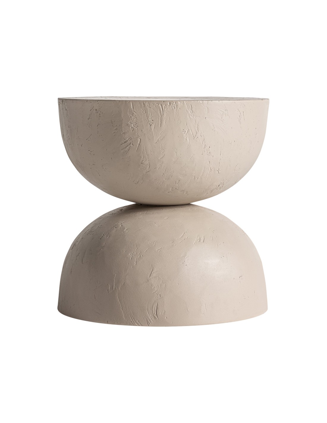 Mesa auxiliar redonda Kotka de estilo Contemporáneo, fabricada en arcilla color marrón claro, en combinación con DM.