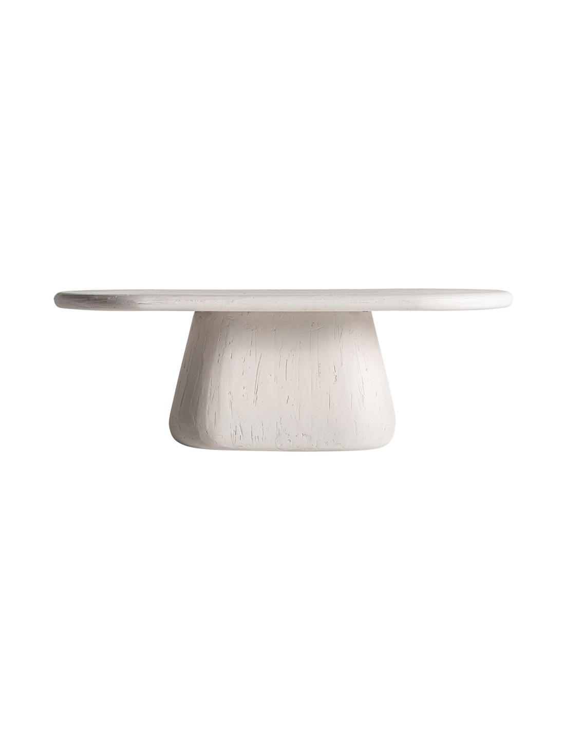 Mesa de centro oval Inha de estilo Contemporáneo, fabricada en madera de mango acabado blanco roto, en combinación con DM.