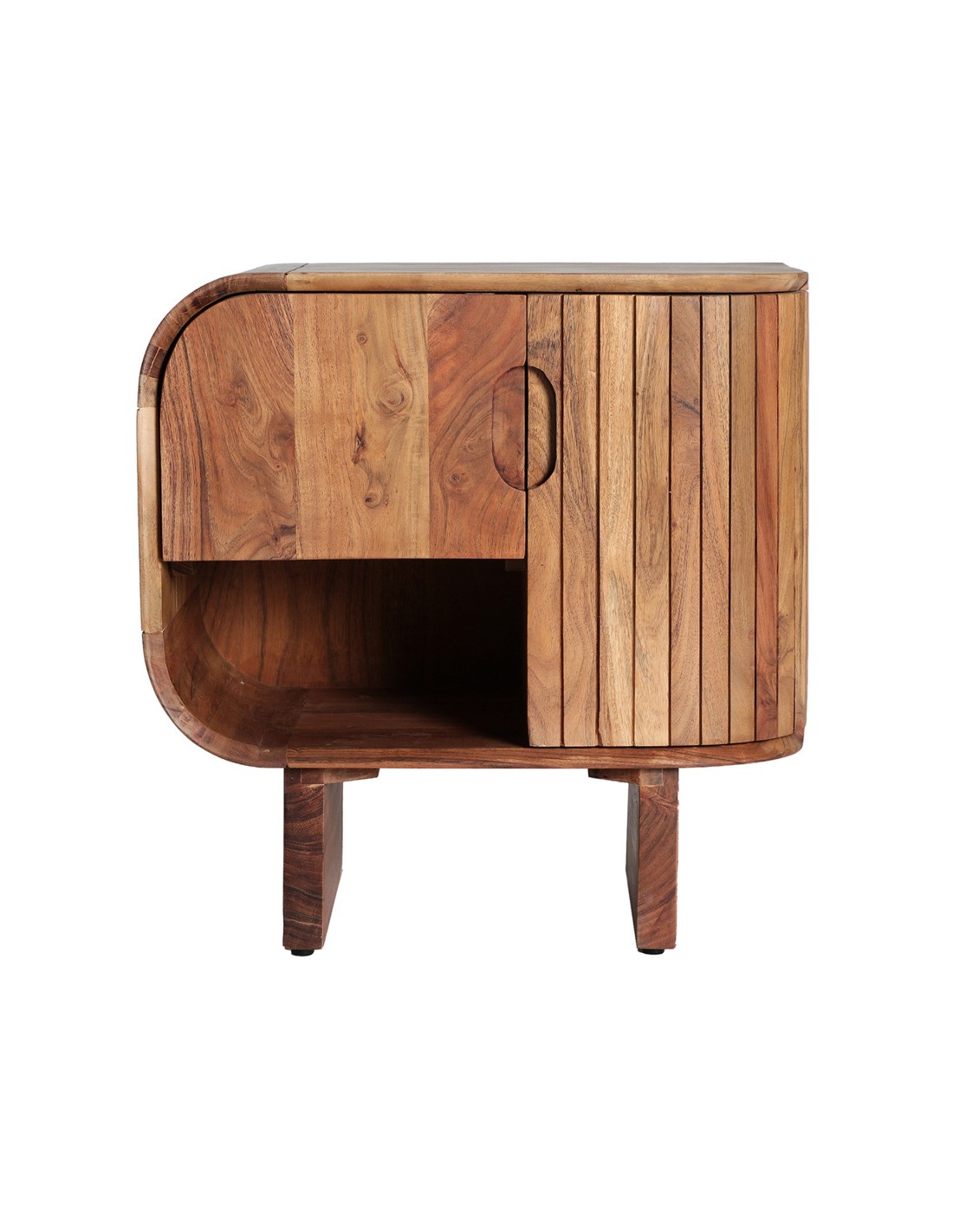 Mesita de noche Blesle de estilo Contemporáneo, fabricada en madera de acacia acabado marrón, en combinación con DM. Producto desmontable.