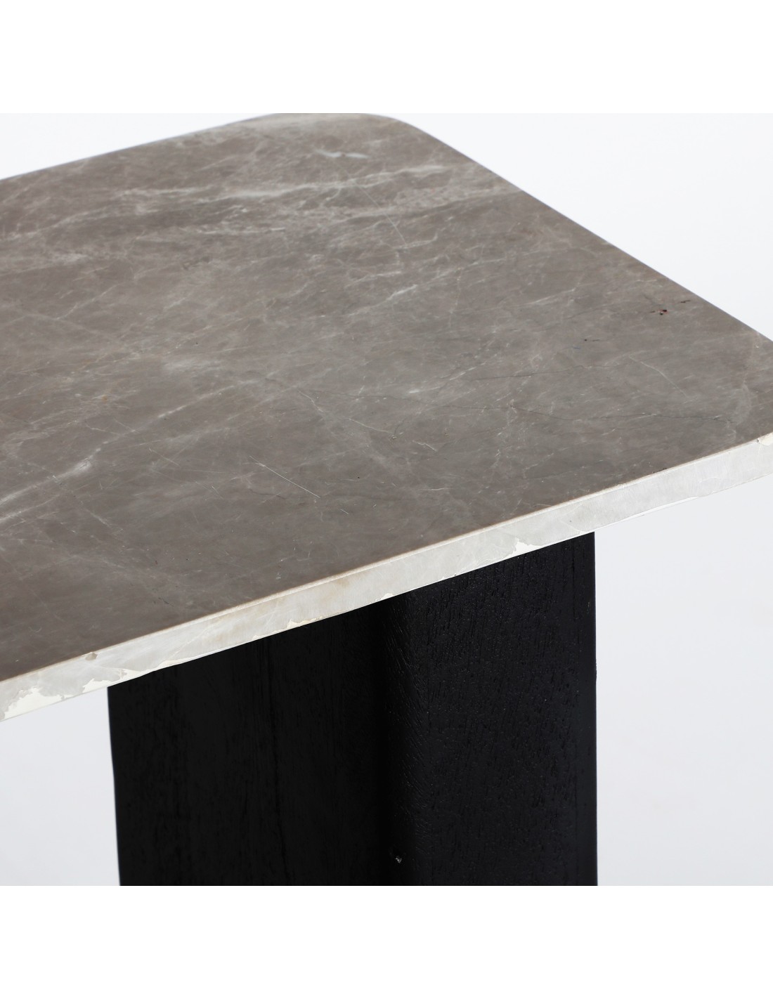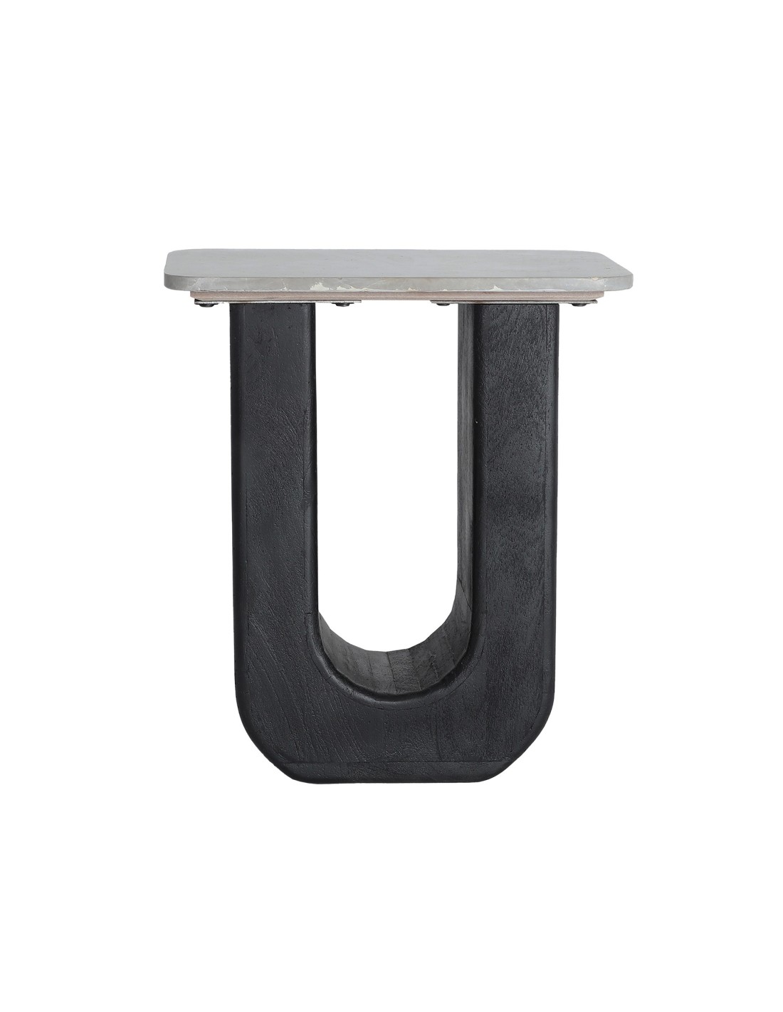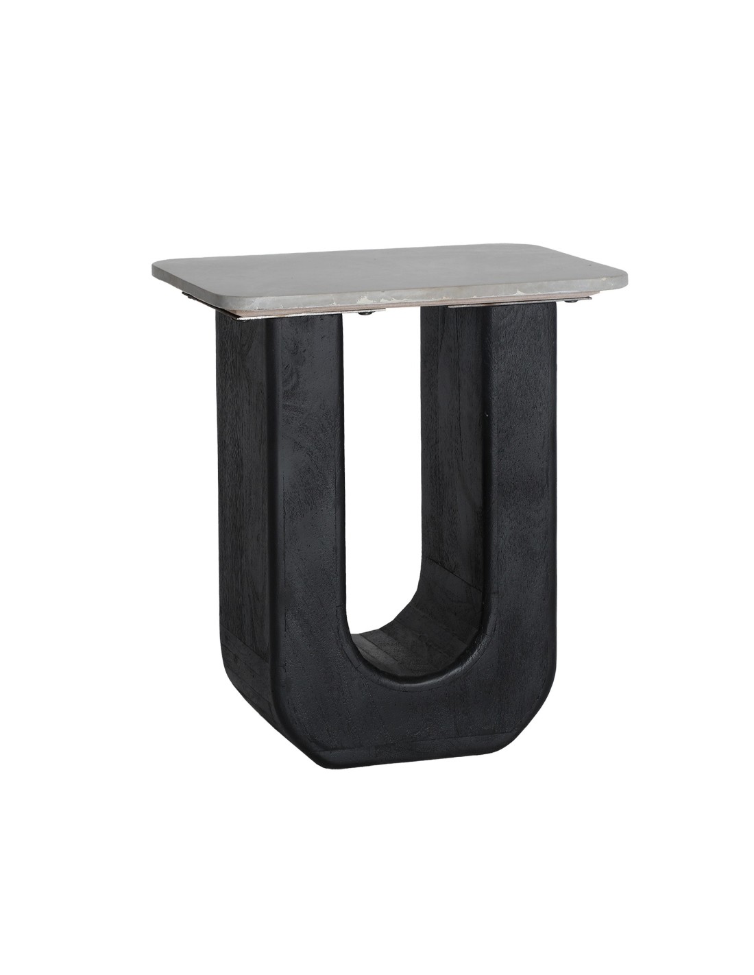 Mesa auxiliar Khej de estilo Contemporáneo, fabricada en madera de mango acabado negro, en combinación con mármol color marrón. Producto desmontable.