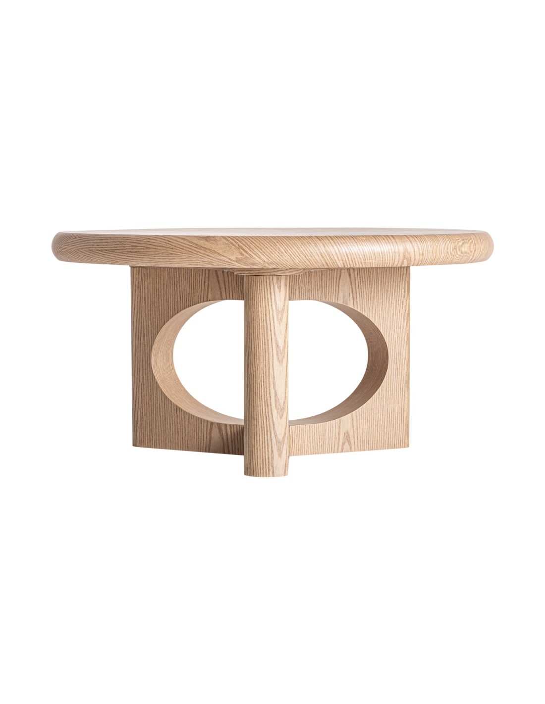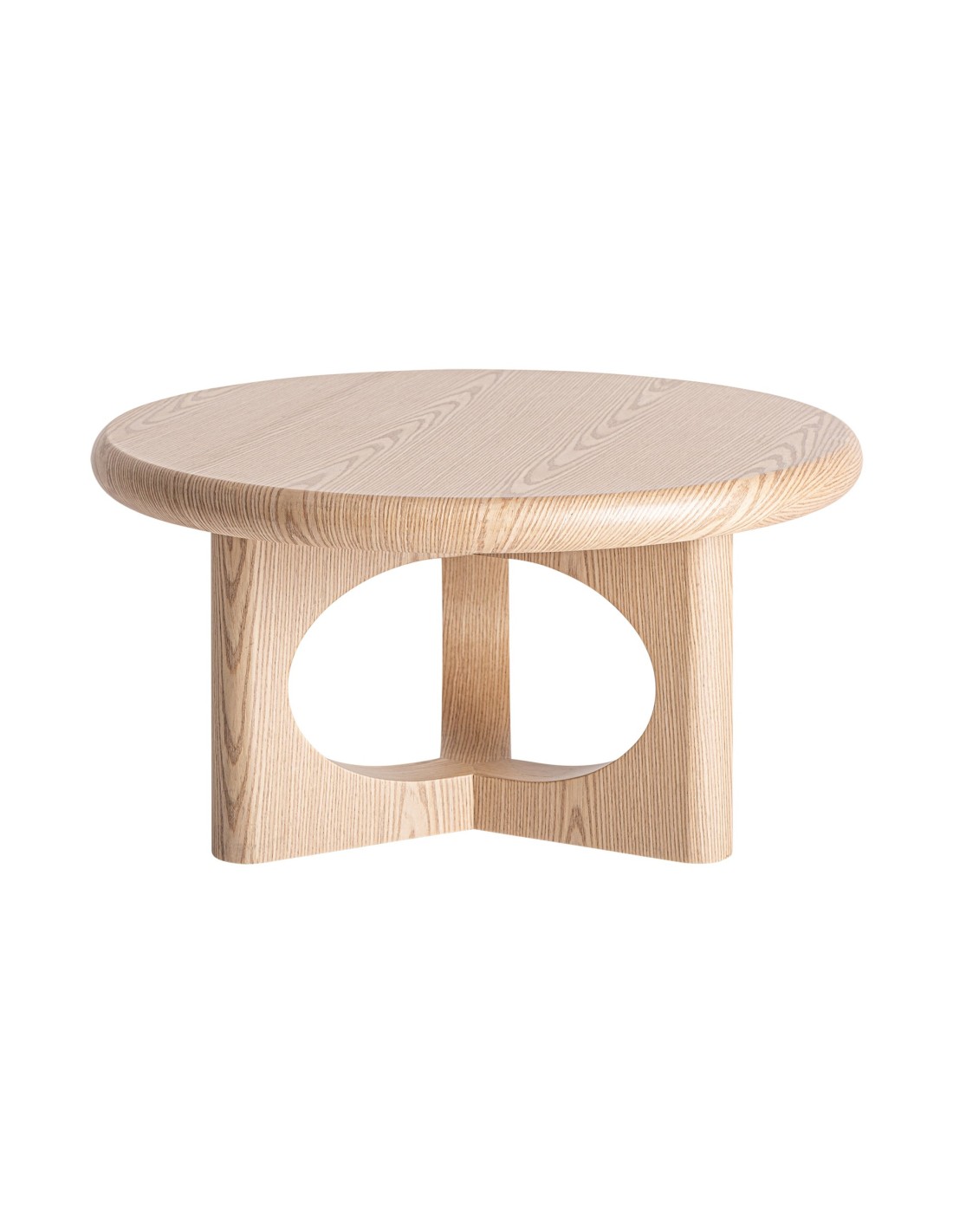 Mesa de centro Lira de estilo Contemporáneo, fabricada en DM acabado marrón claro, en combinación con chapa de madera.