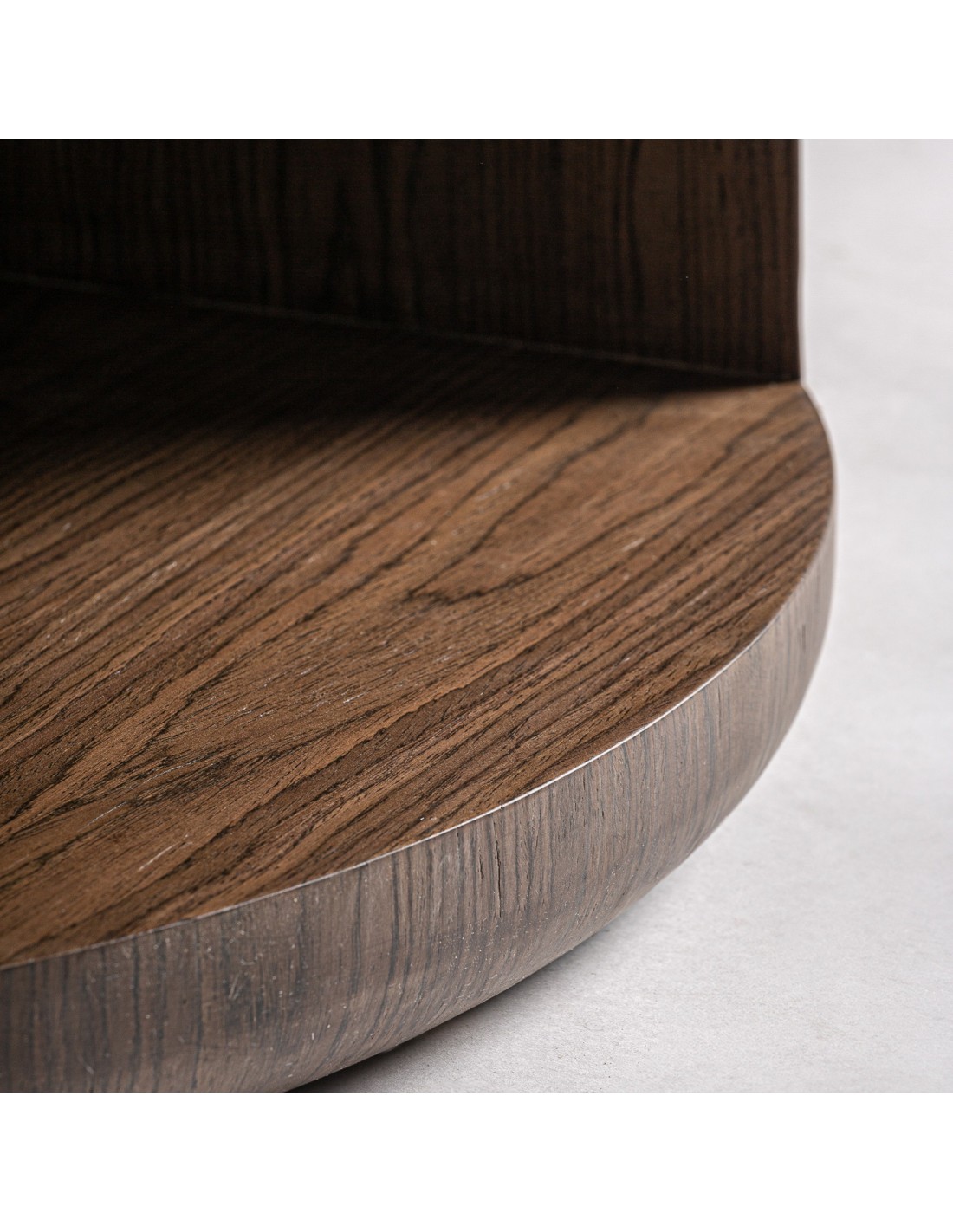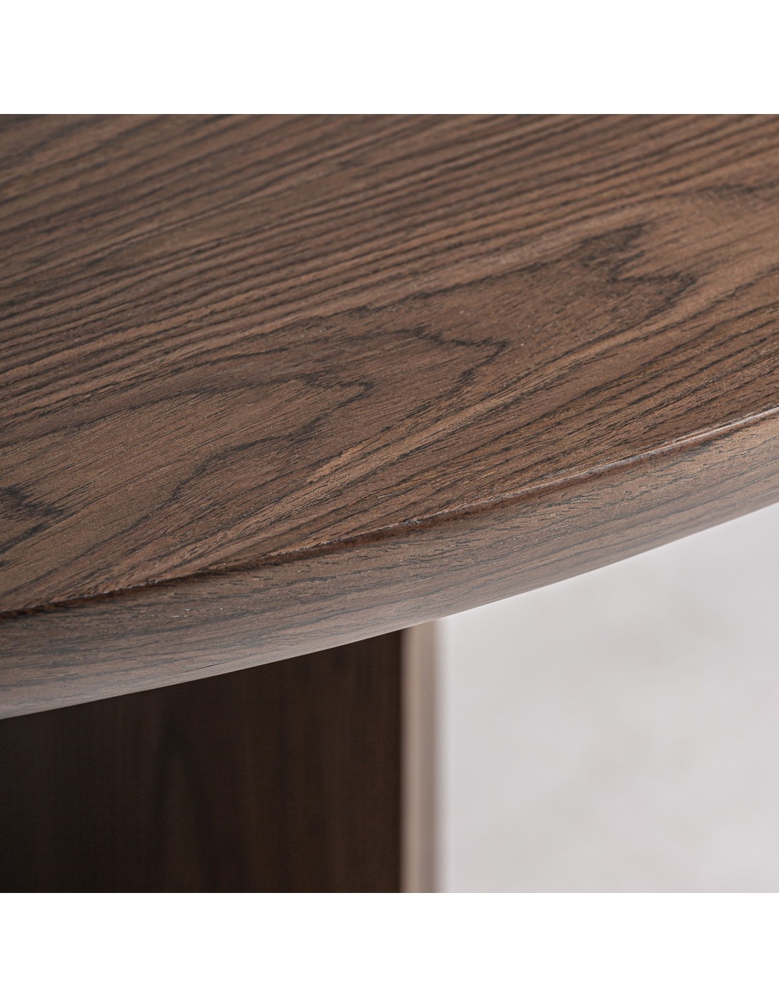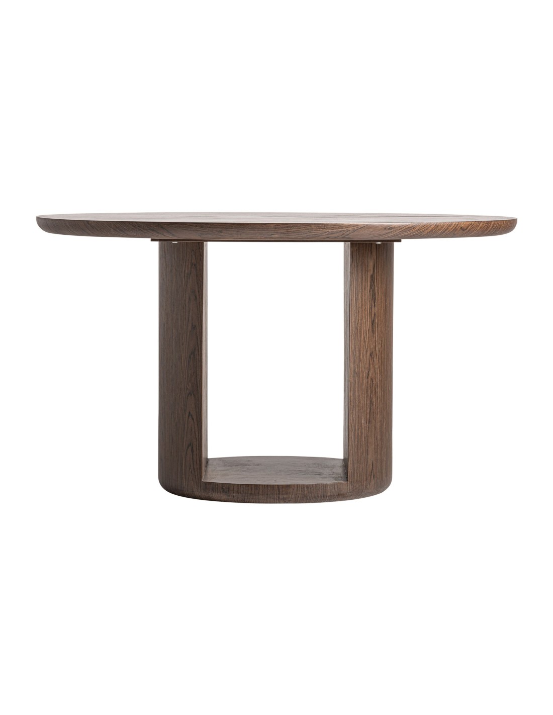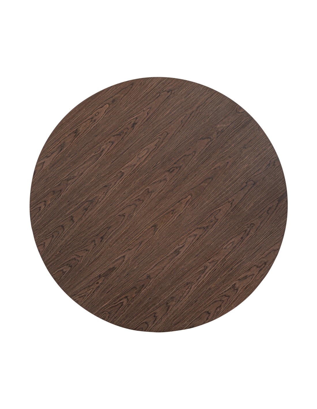Mesa comedor redonda Arko de estilo Contemporáneo, fabricada en DM acabado marrón, en combinación con chapa de madera. Producto desmontable.