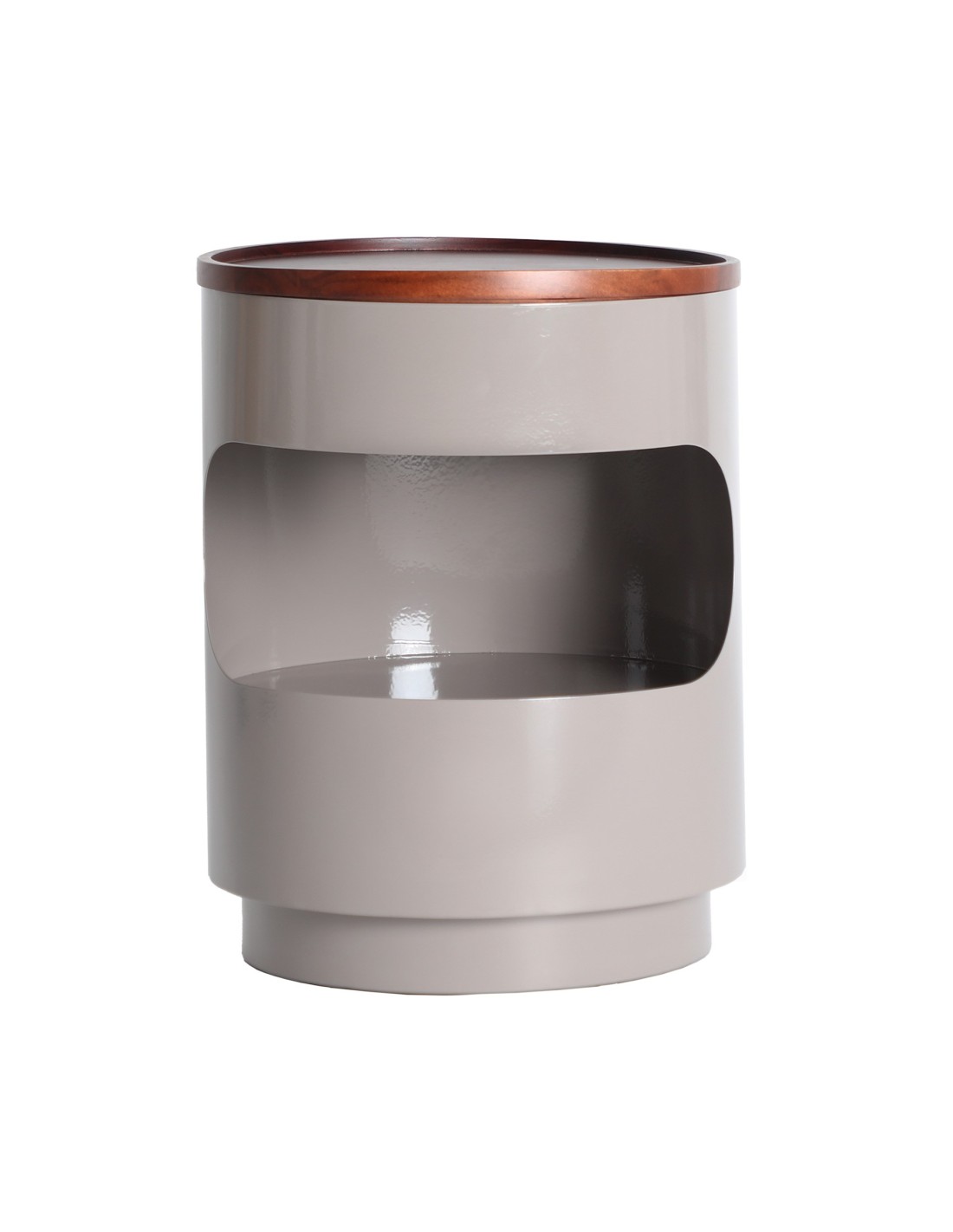 Mesita de noche Noa de estilo Contemporáneo, fabricada en hierro color gris con acabado brillo, en combinación con madera de acacia color marrón.
