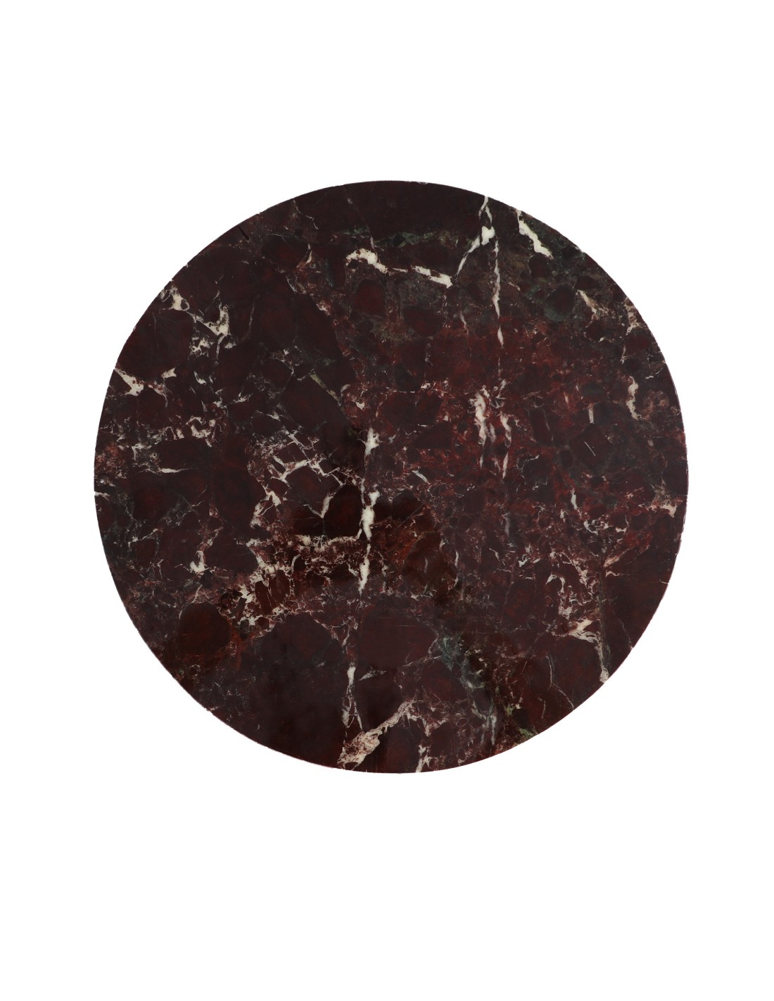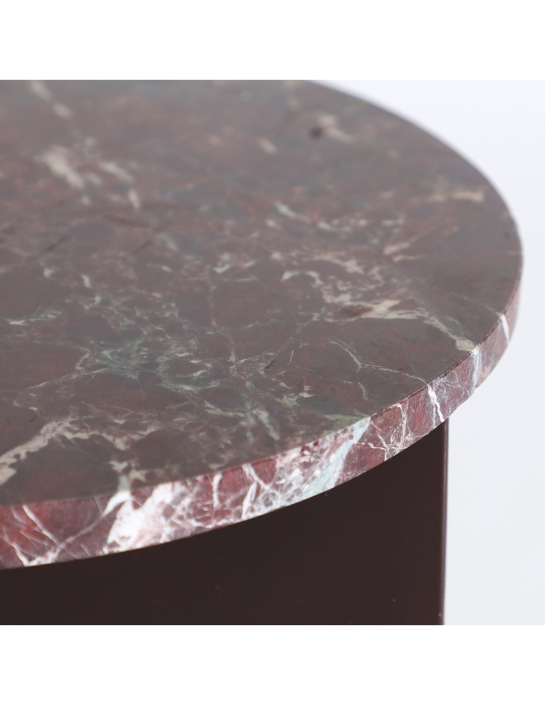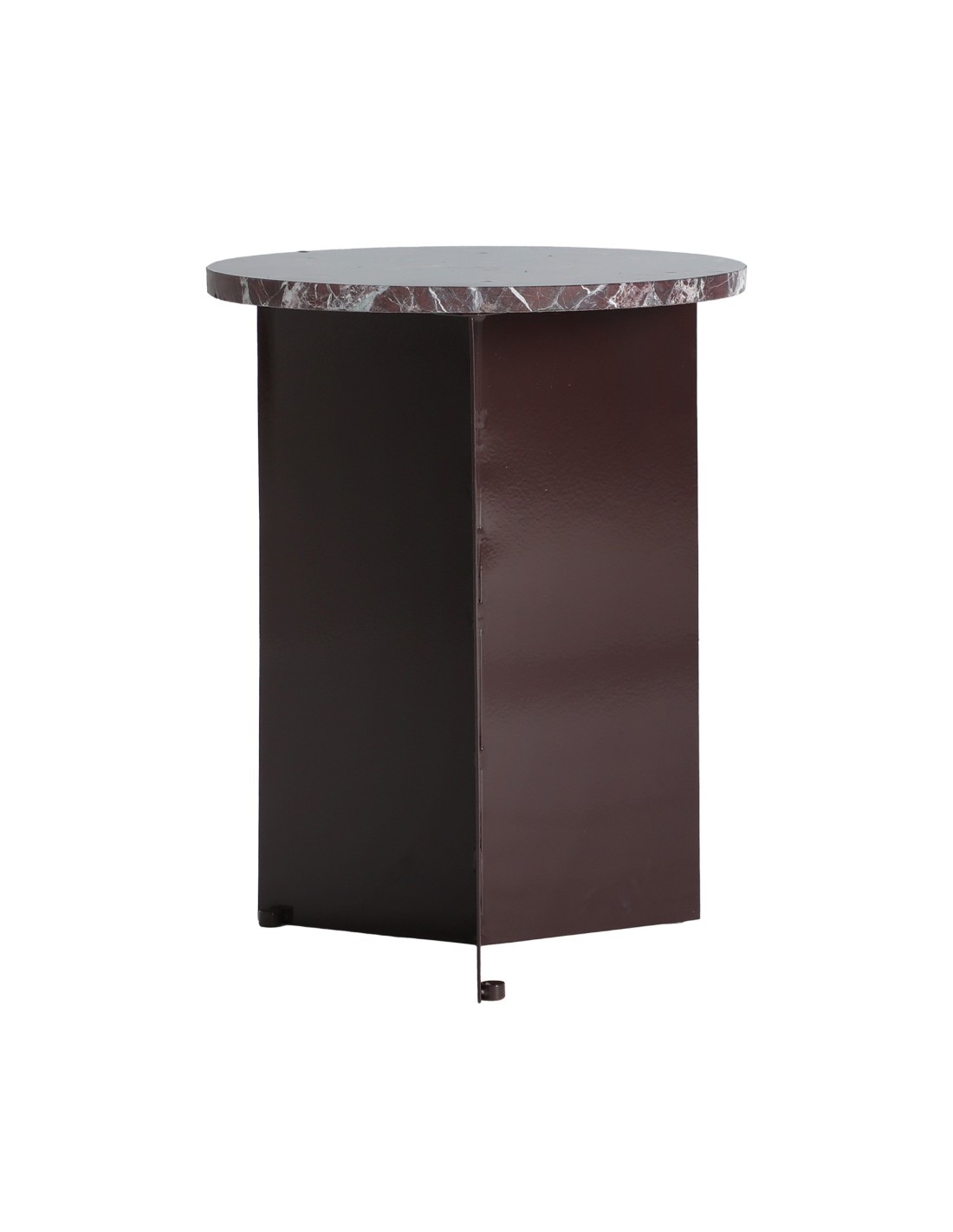 Mesa auxiliar Tilo de estilo Contemporáneo, fabricada en hierro color chocolate con acabado brillo, en combinación con mármol sintético color burdeos con acabado veteado.