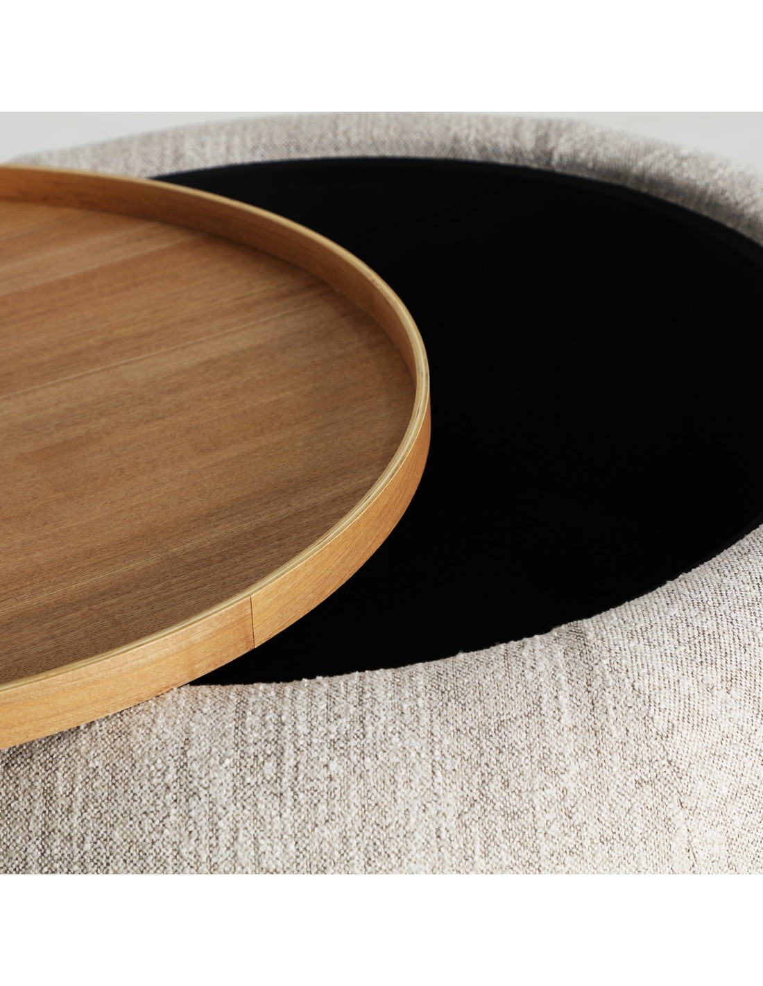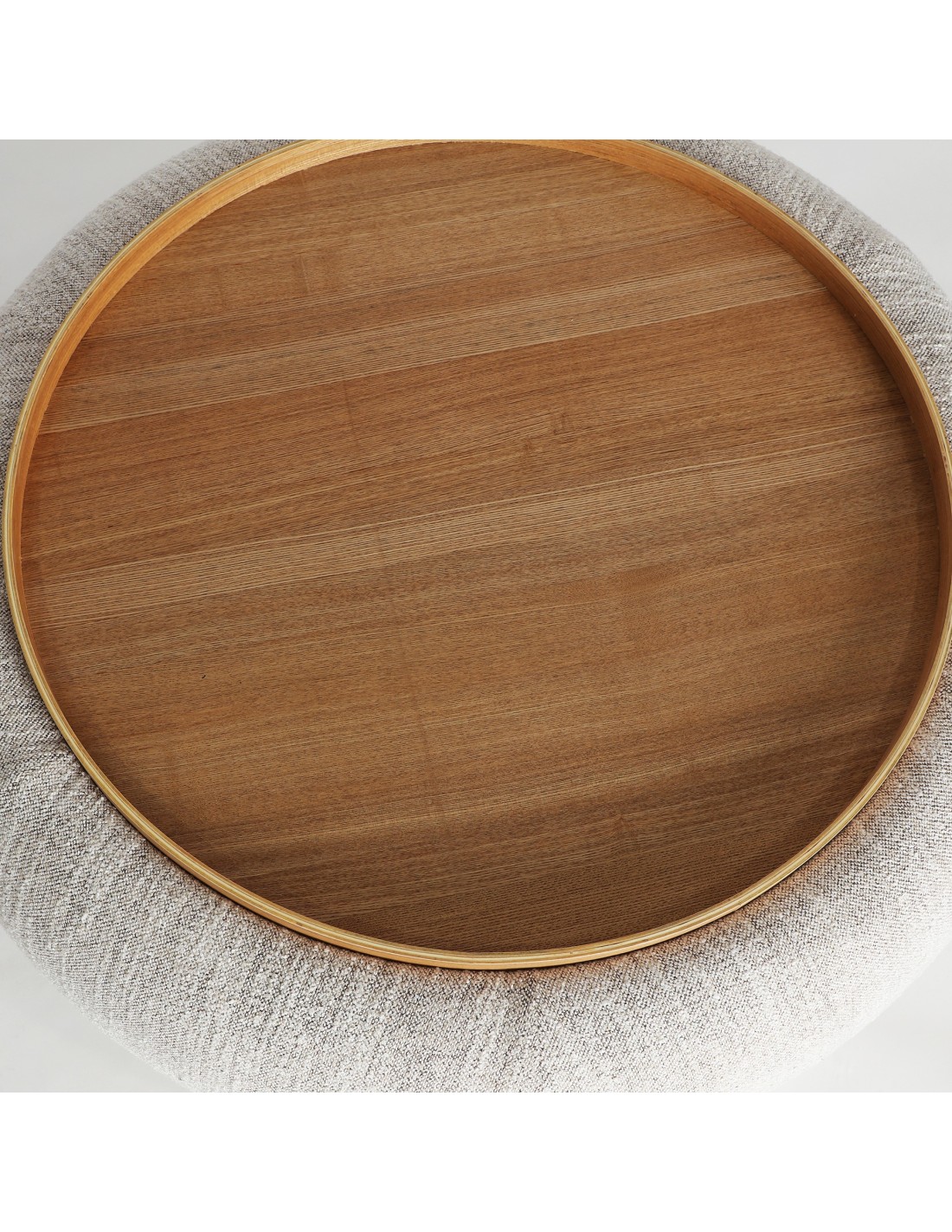 Mesa de centro Sils de estilo Moderno, fabricada en DM acabado marrón claro, en combinación con poliéster color beige.