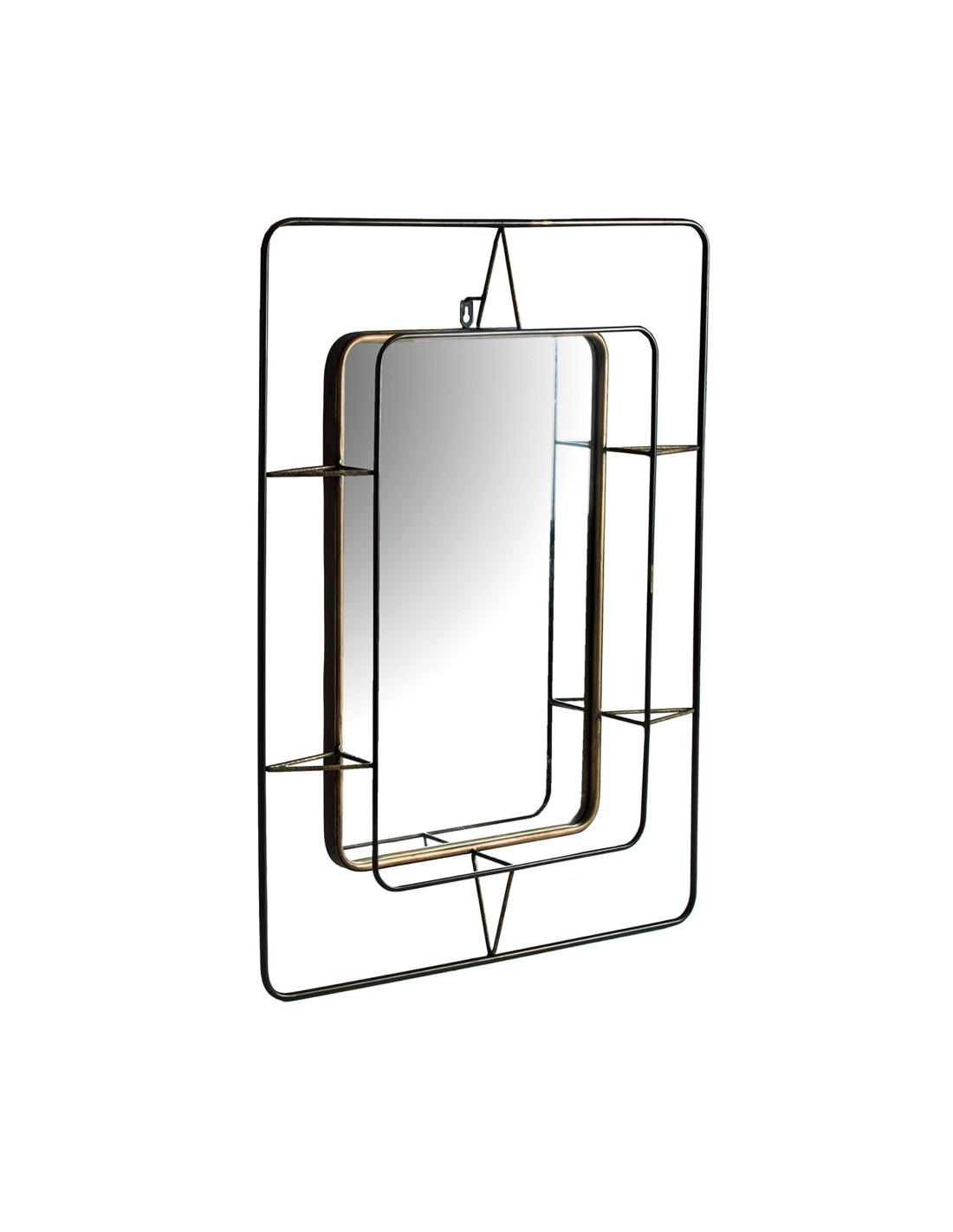 Espejo rectangular Veresa de estilo Art Deco, fabricado en hierro en color oro con acabado viejo, combinado con espejo en color negro.