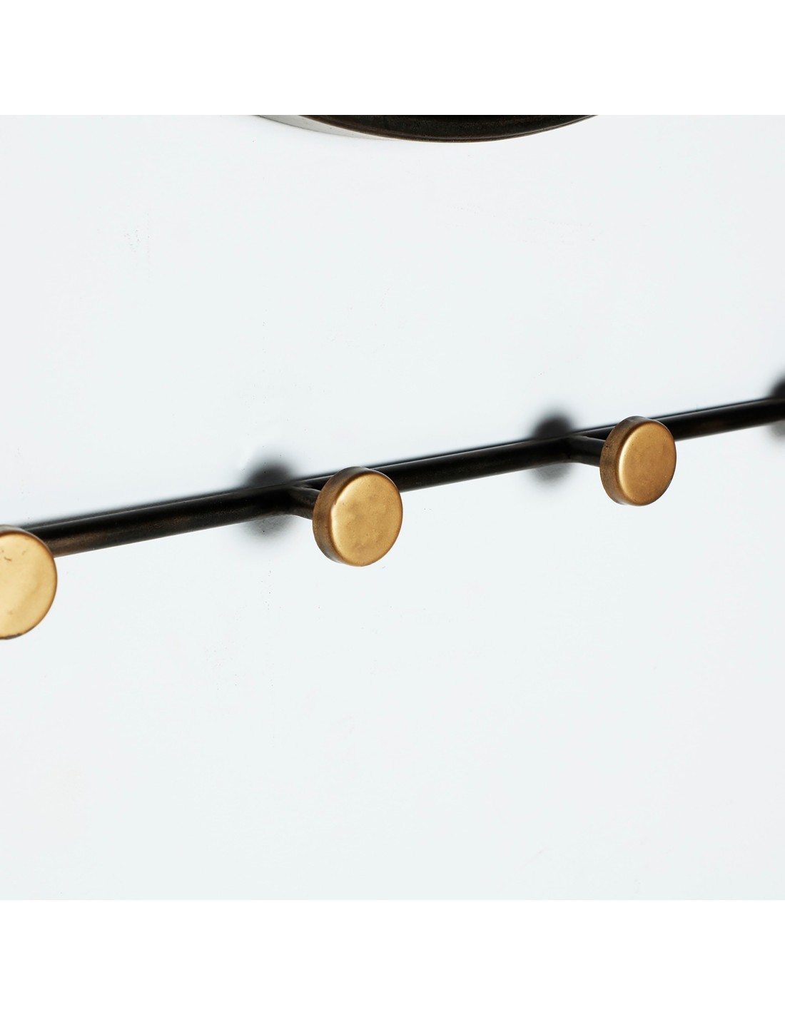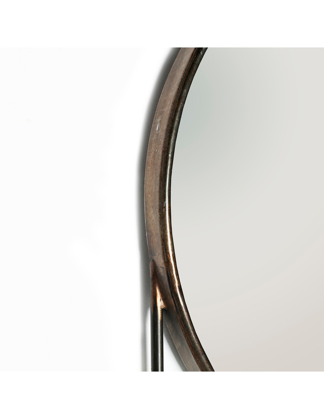 Espejo redondo Vische de estilo Industrial, fabricado en hierro en color negro, combinado con espejo en color oro.