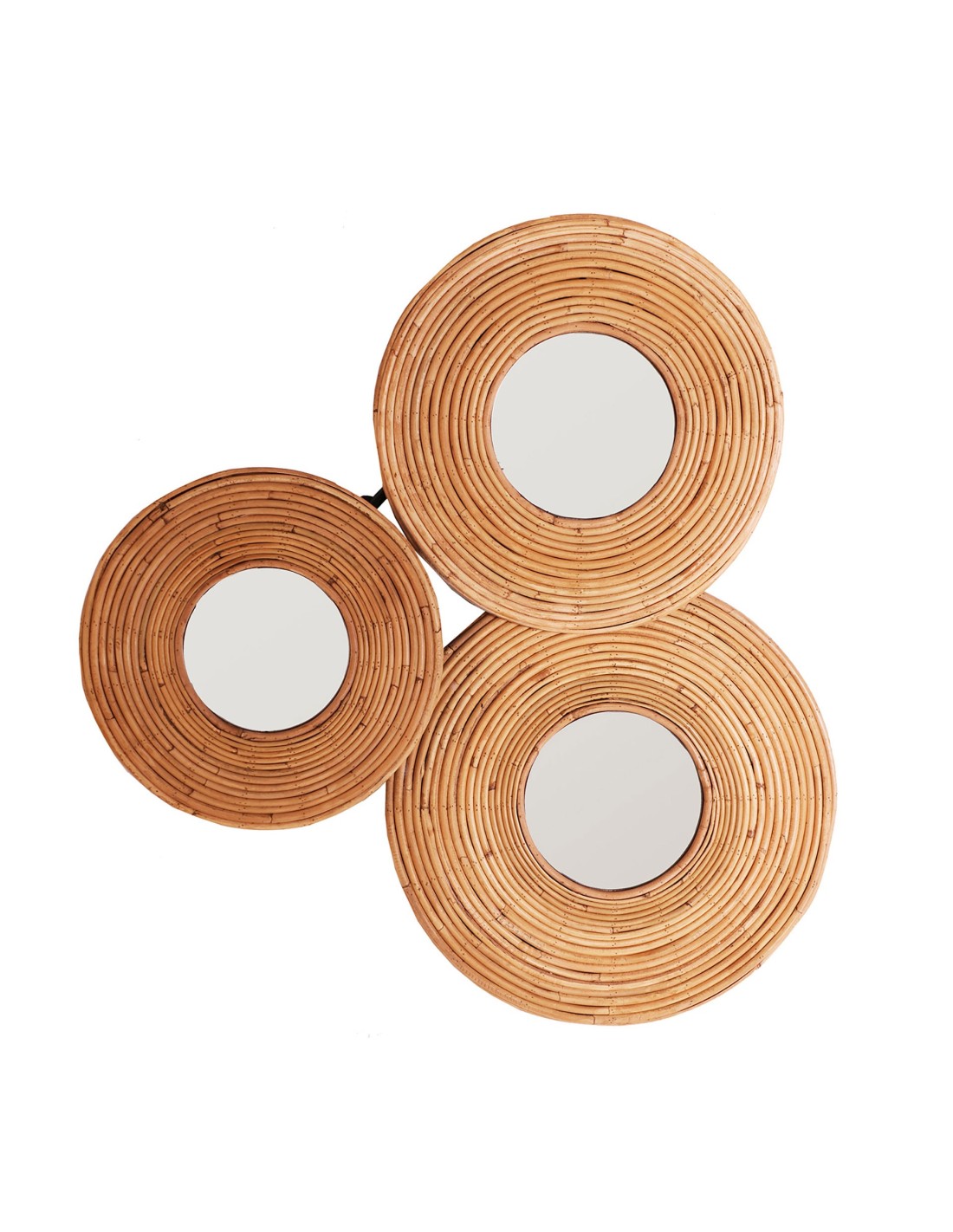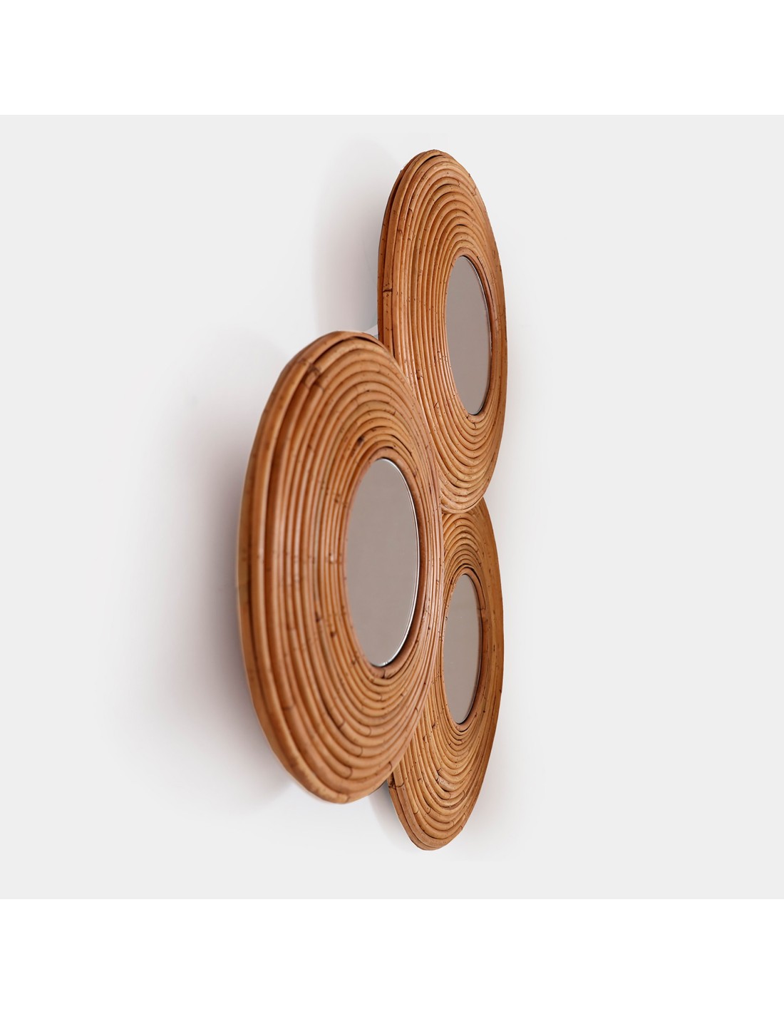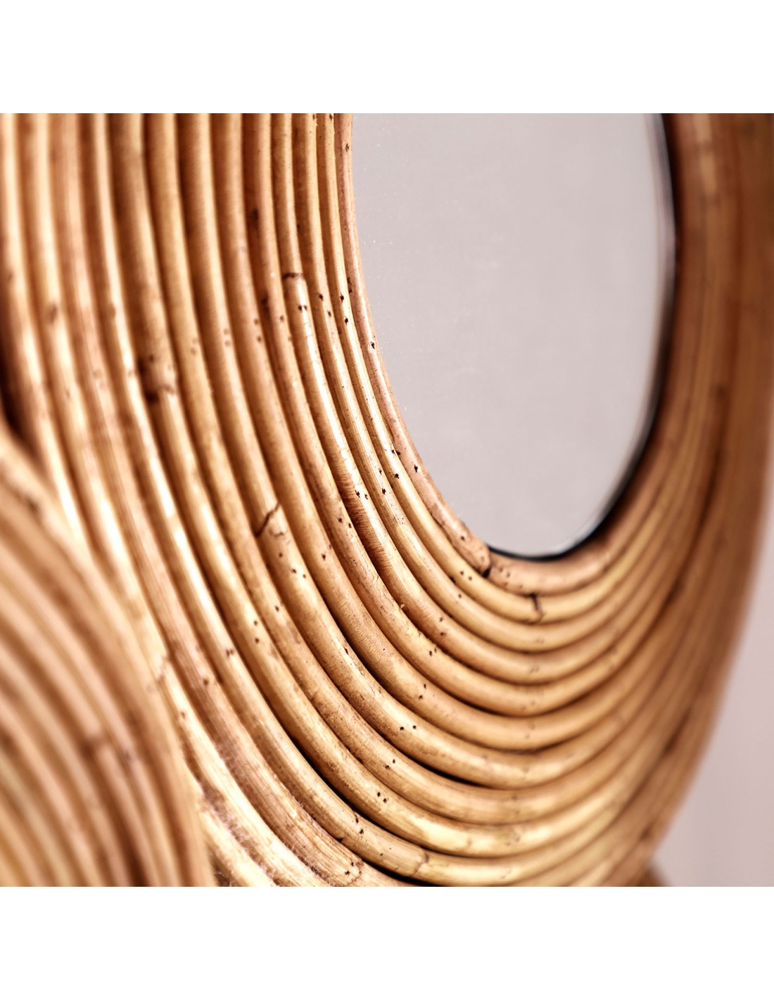 Espejo irregular Asher de estilo Boho, fabricado en bambú en color marrón, combinado con espejo.