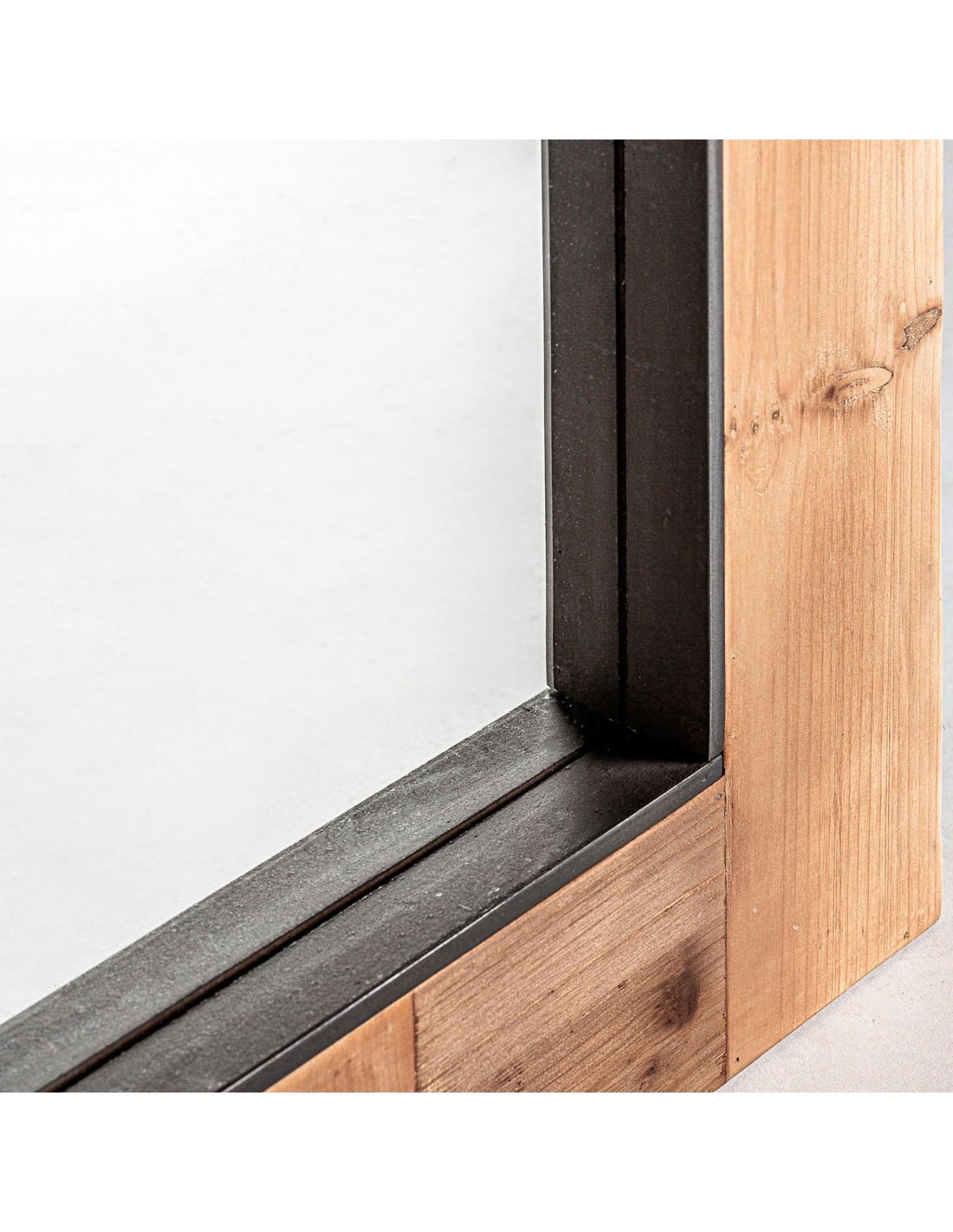 Espejo rectangular Gien de estilo Industrial, fabricado en madera de abeto en color marrón, combinado con espejo y madera dm.