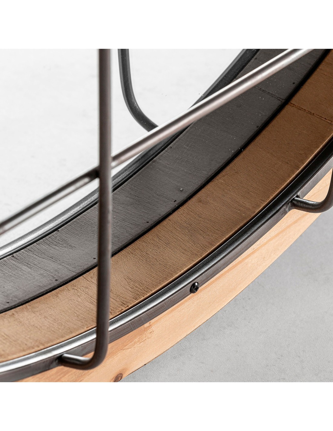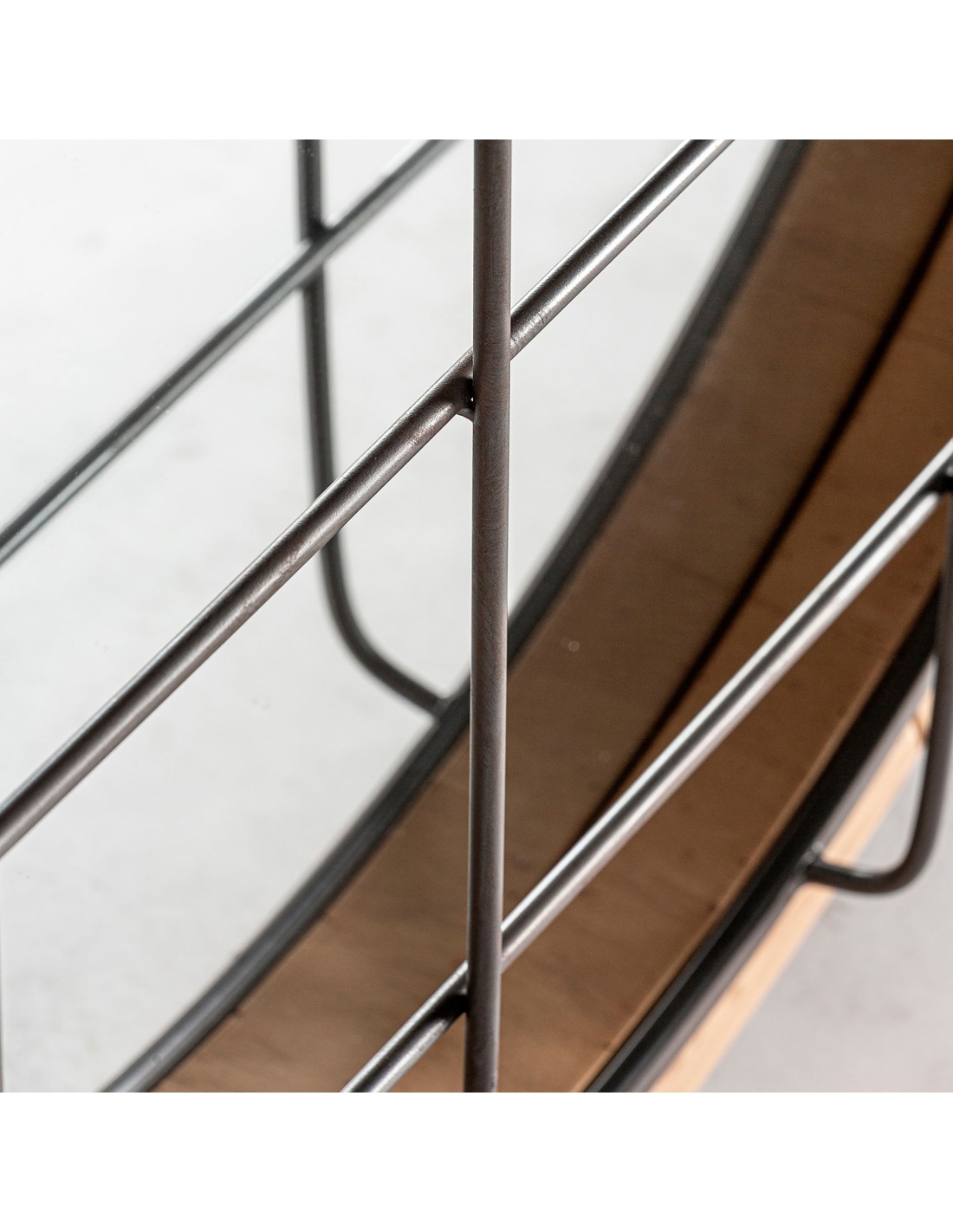 Espejo redondo Longford de estilo Vintage, fabricado en madera de abeto en color marrón, combinado con hierro en color gris y espejo. Madera dm.