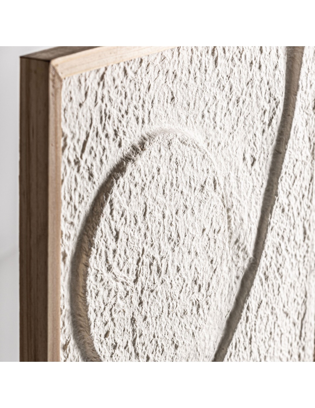 Cuadro Parker de estilo Contemporáneo, fabricado en papel maché en color blanco con acabado artesanal, combinado con madera de paulownia en color natural.