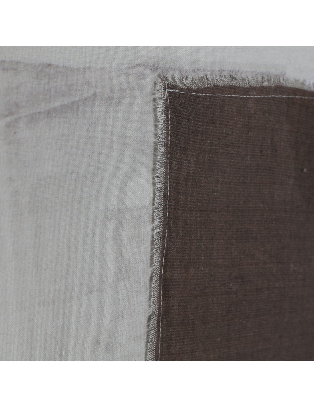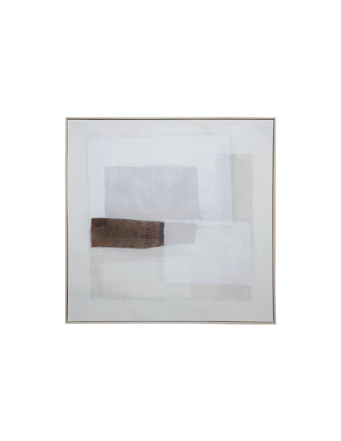 Cuadro Bruma de estilo Contemporáneo, fabricado en lienzo en color blanco, combinado con lino en color tonos en marrón y madera de pino en color marrón.