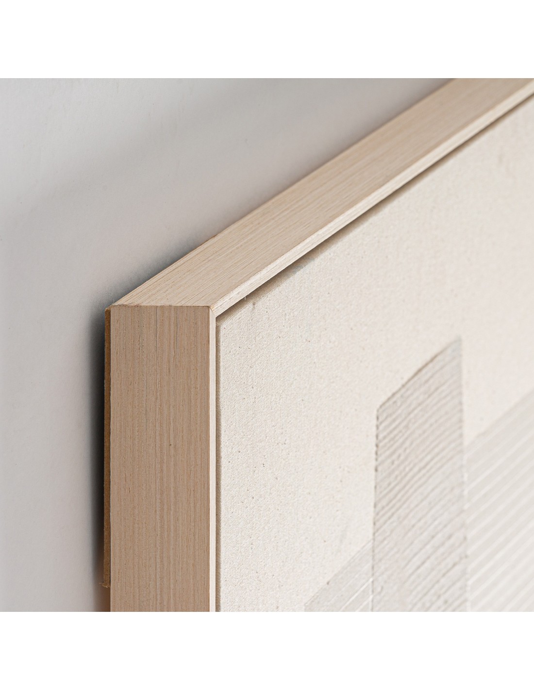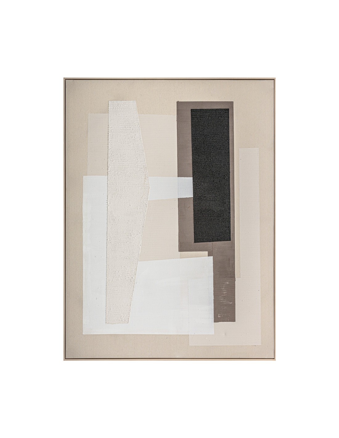 Cuadro Nexo de estilo Contemporáneo, fabricado en lienzo en color tonos neutros con acabado artesanal, combinado con madera de pino en color marrón claro.