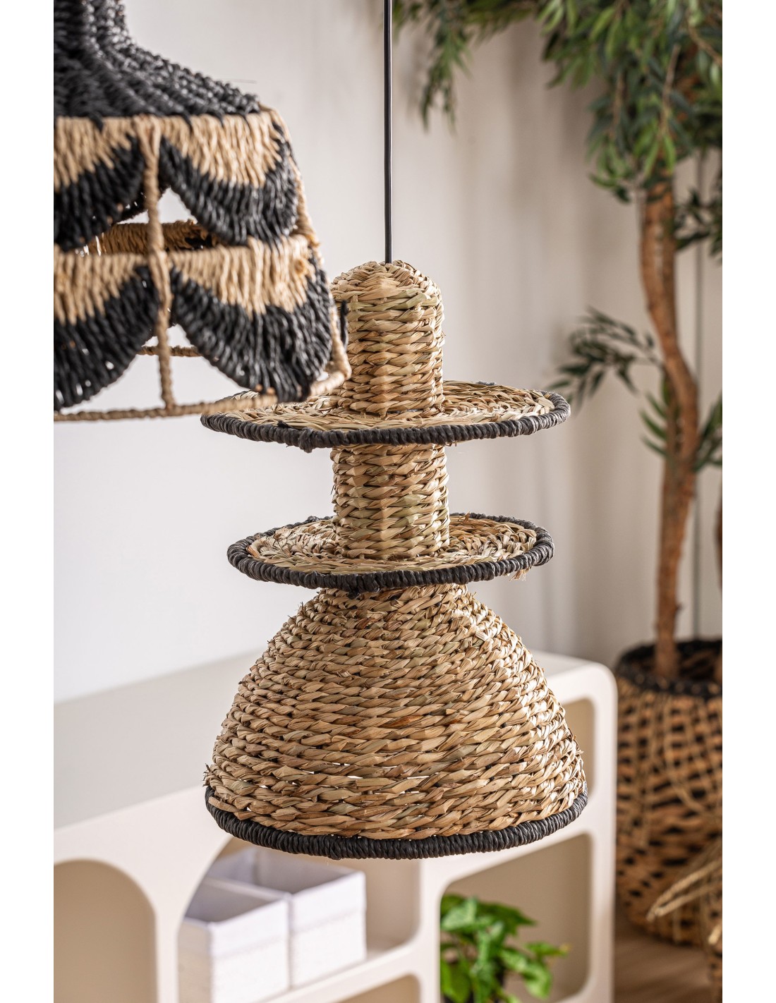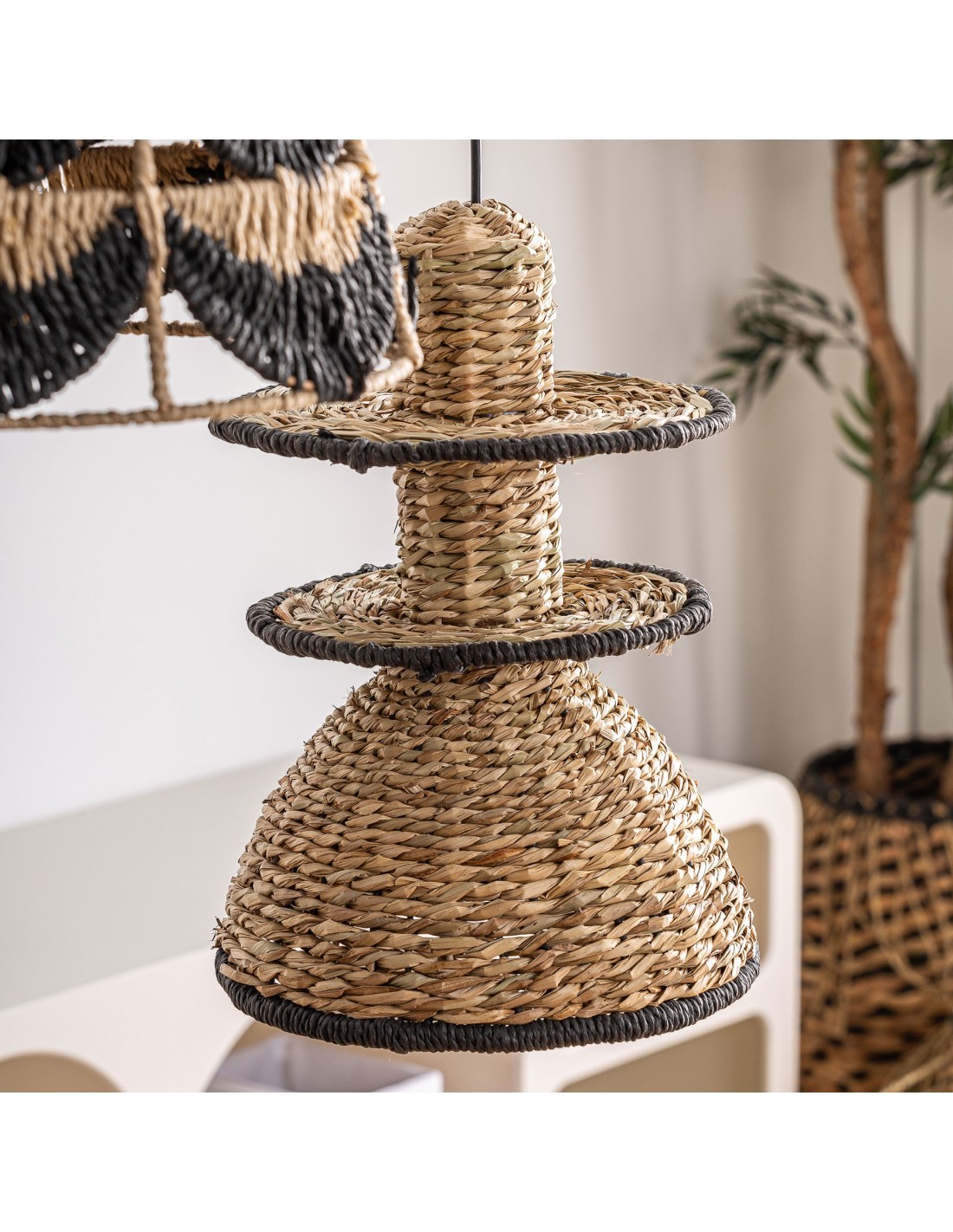 Lámpara de Techo KASSES, Fibra Natural / Negro, Natural - Kodu Home Design