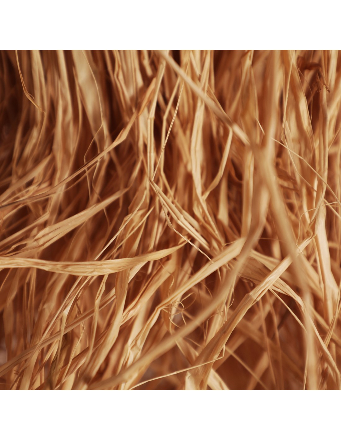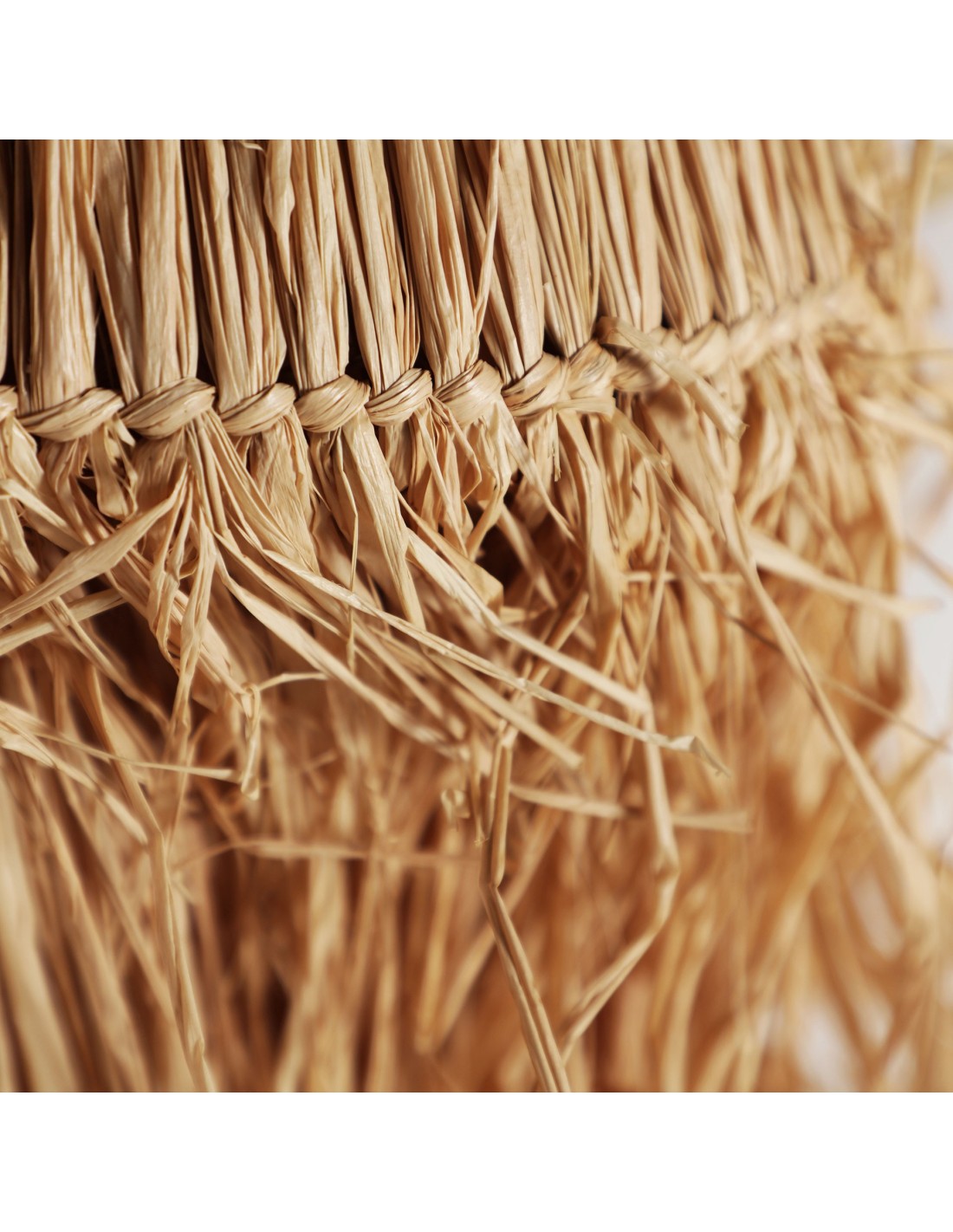 Lámpara de techo redonda Kasses de estilo Boho, fabricada en fibra natural en color marrón, combinado con rafia y hierro.