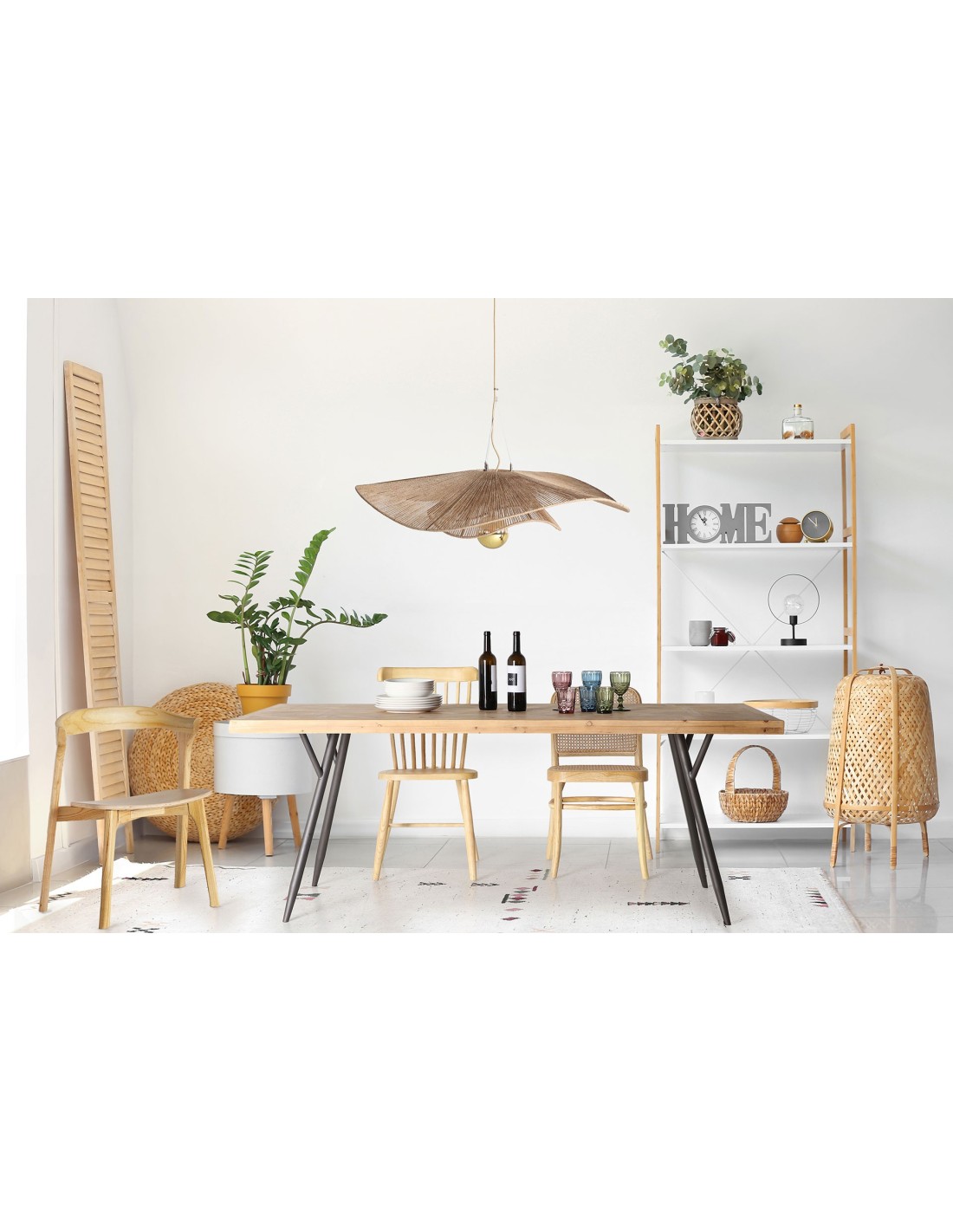Lámpara de techo Khed de estilo Boho, fabricada en yute en color marrón, combinado con hierro.