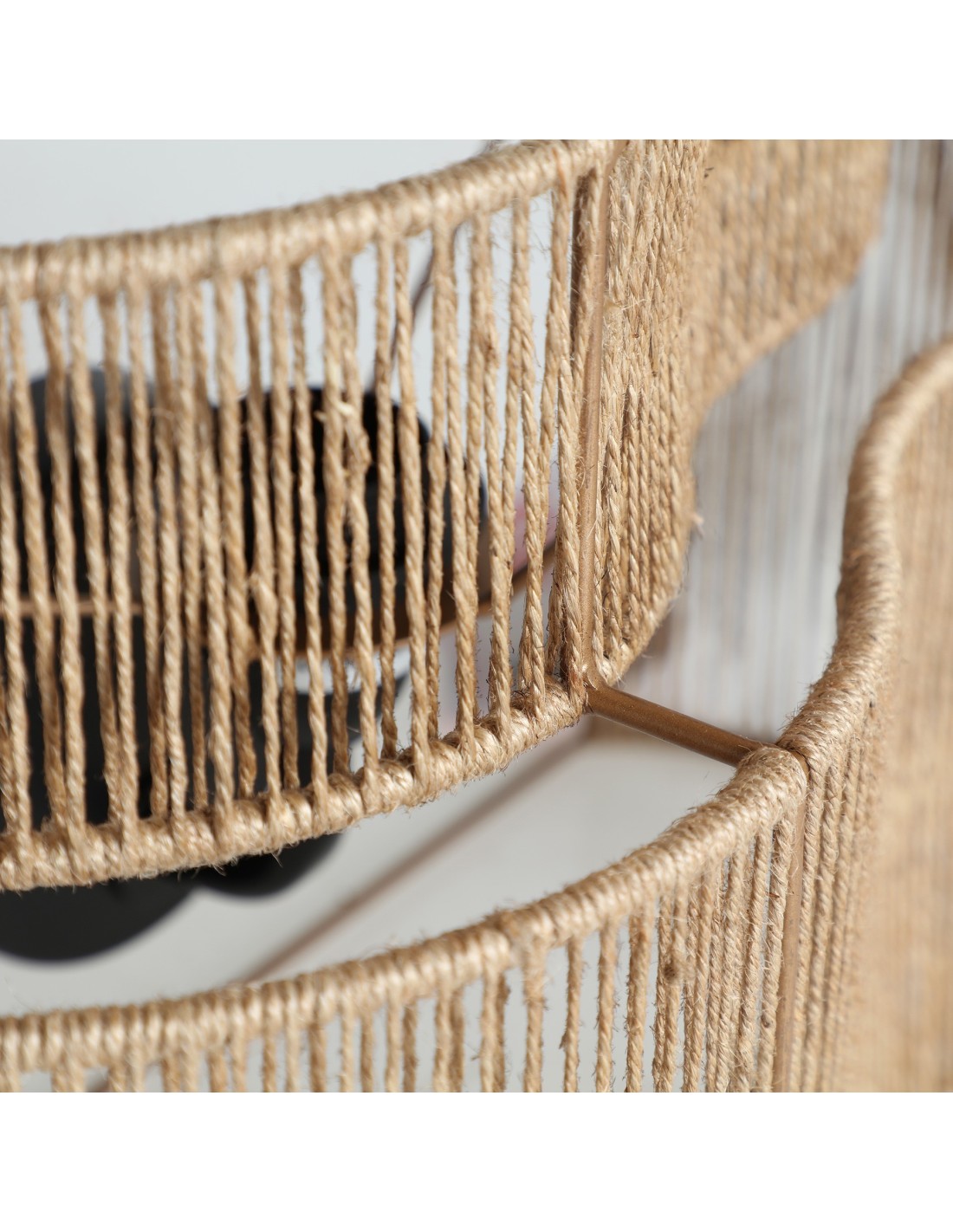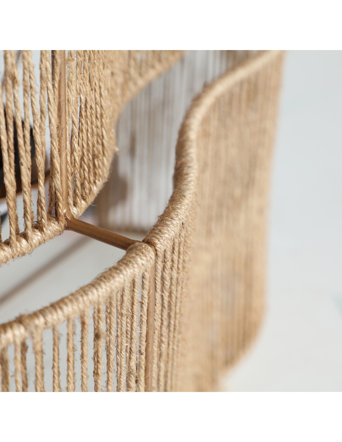 Aplique Yaxunah de estilo Boho, fabricado en yute color marrón claro, combinado con hierro a tono.