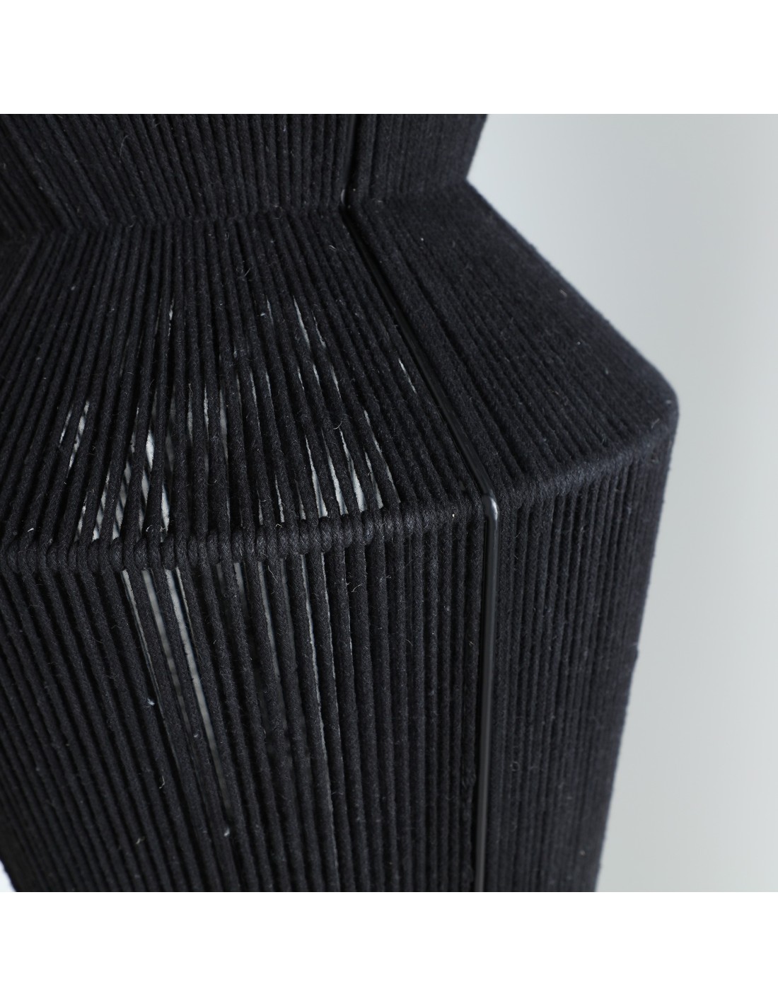 Lámpara de techo Sayil de estilo Boho, fabricada en algodón color negro, combinado con hierro a tono.