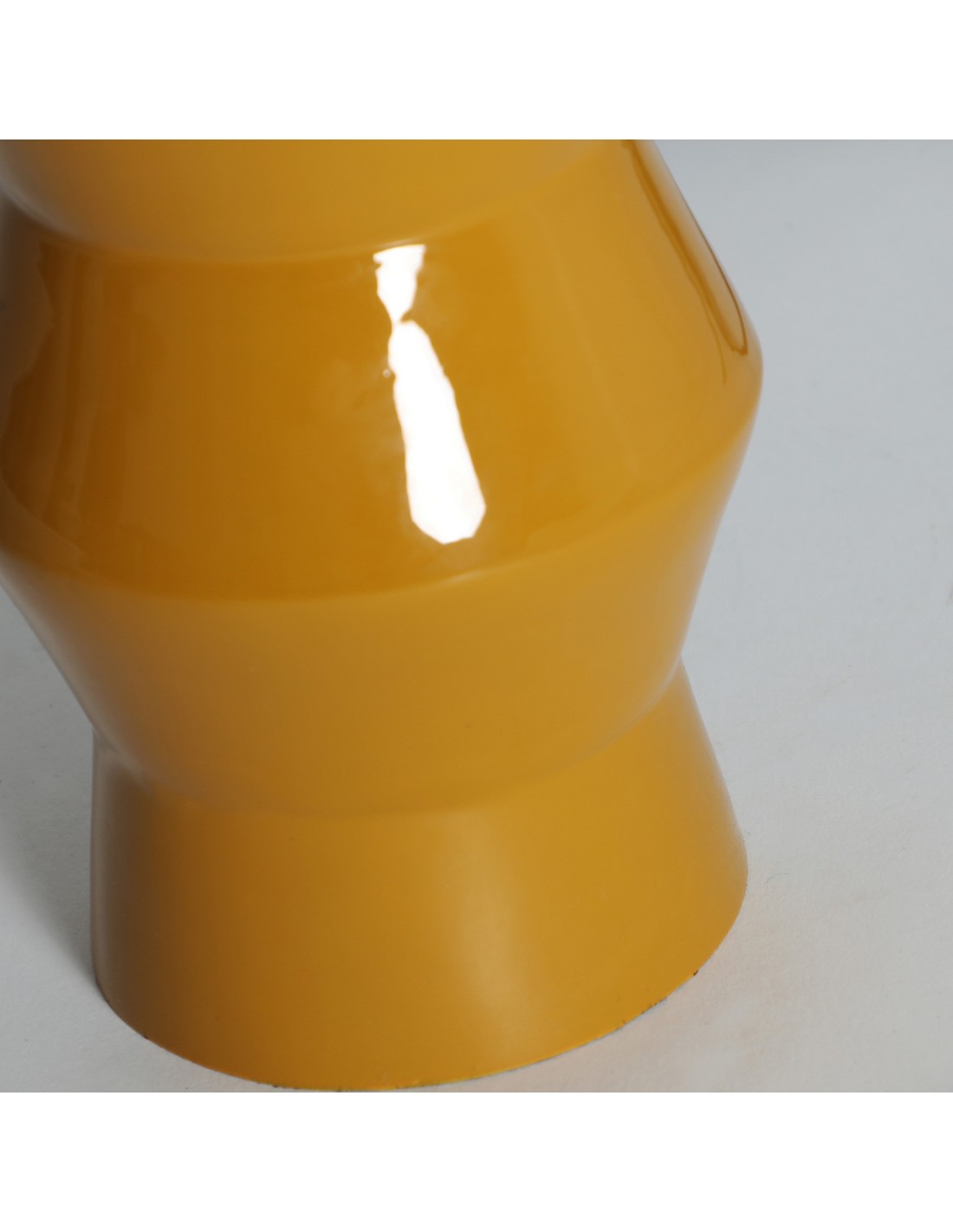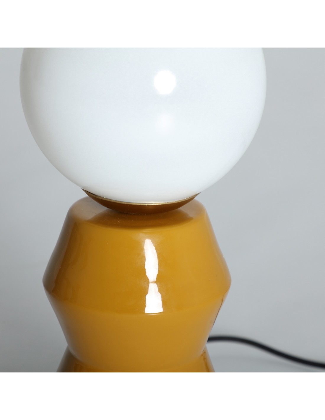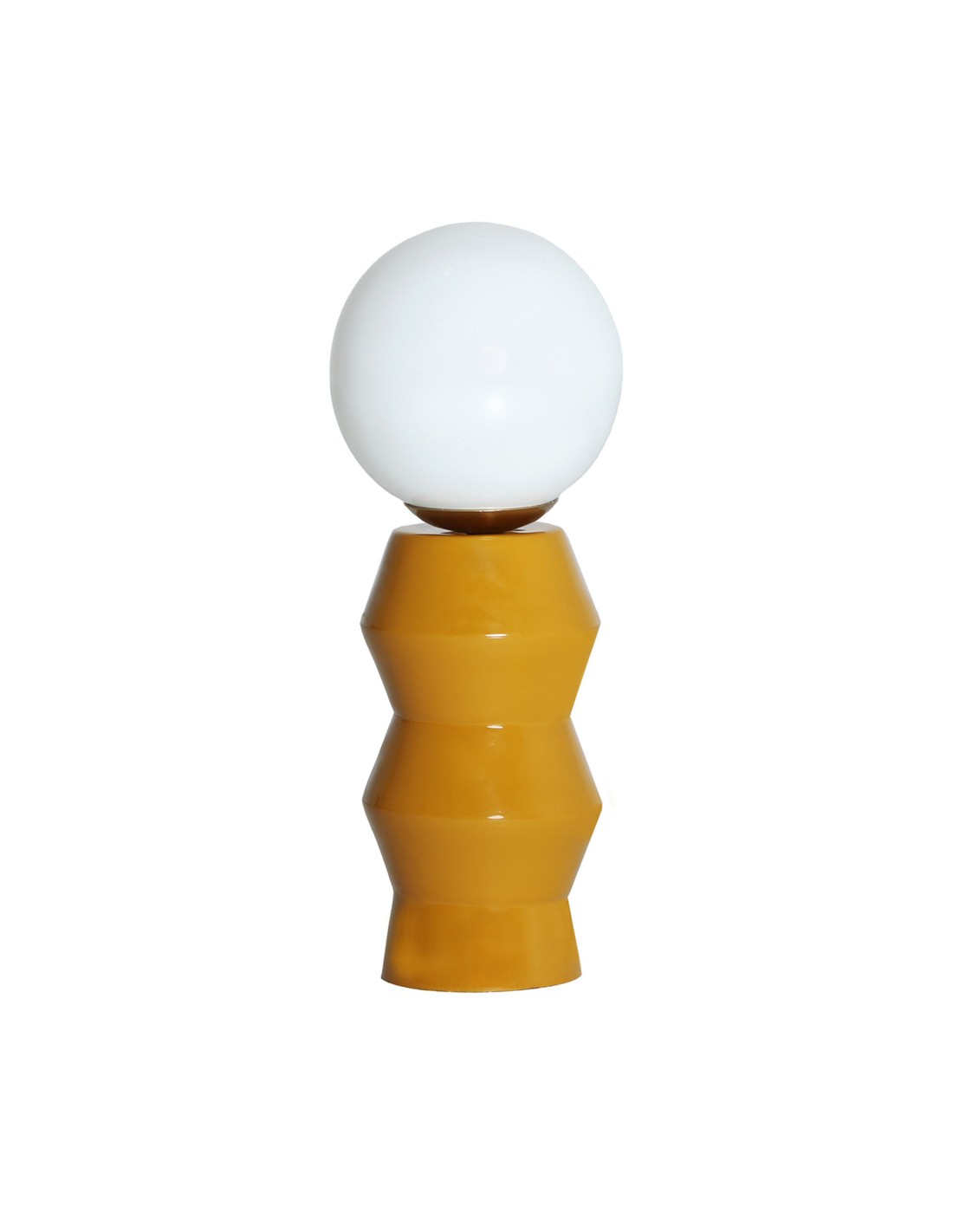 Lámpara de sobremesa Orvieto de estilo Moderno, fabricada en hierro color mostaza, combinado con vidrio color blanco y acero color oro. Producto desmontable.