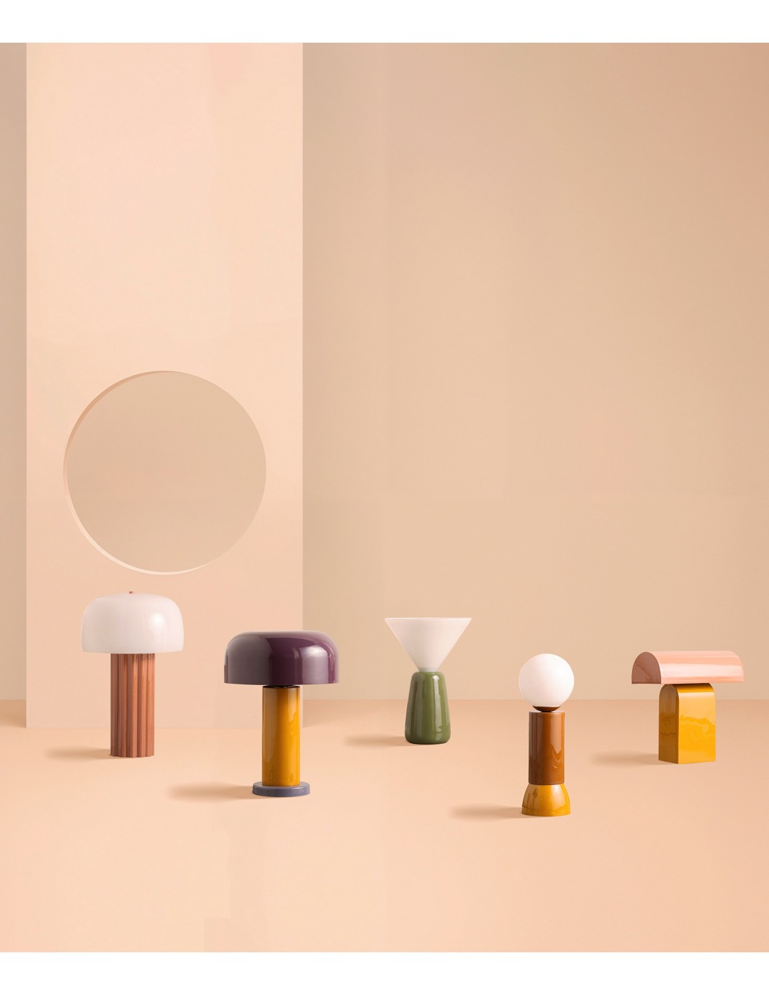 Lámpara de sobremesa Vezia de estilo Moderno, fabricada en hierro en colores mostaza y naranja.