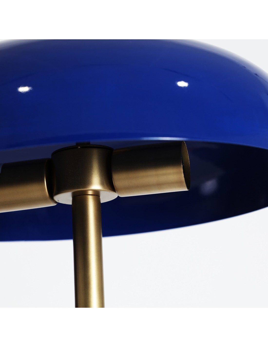 Lámpara de pie Glitter de estilo Contemporáneo, fabricada en hierro color azul con acabado brillo, en combinación con dorado y aluminio color gris.