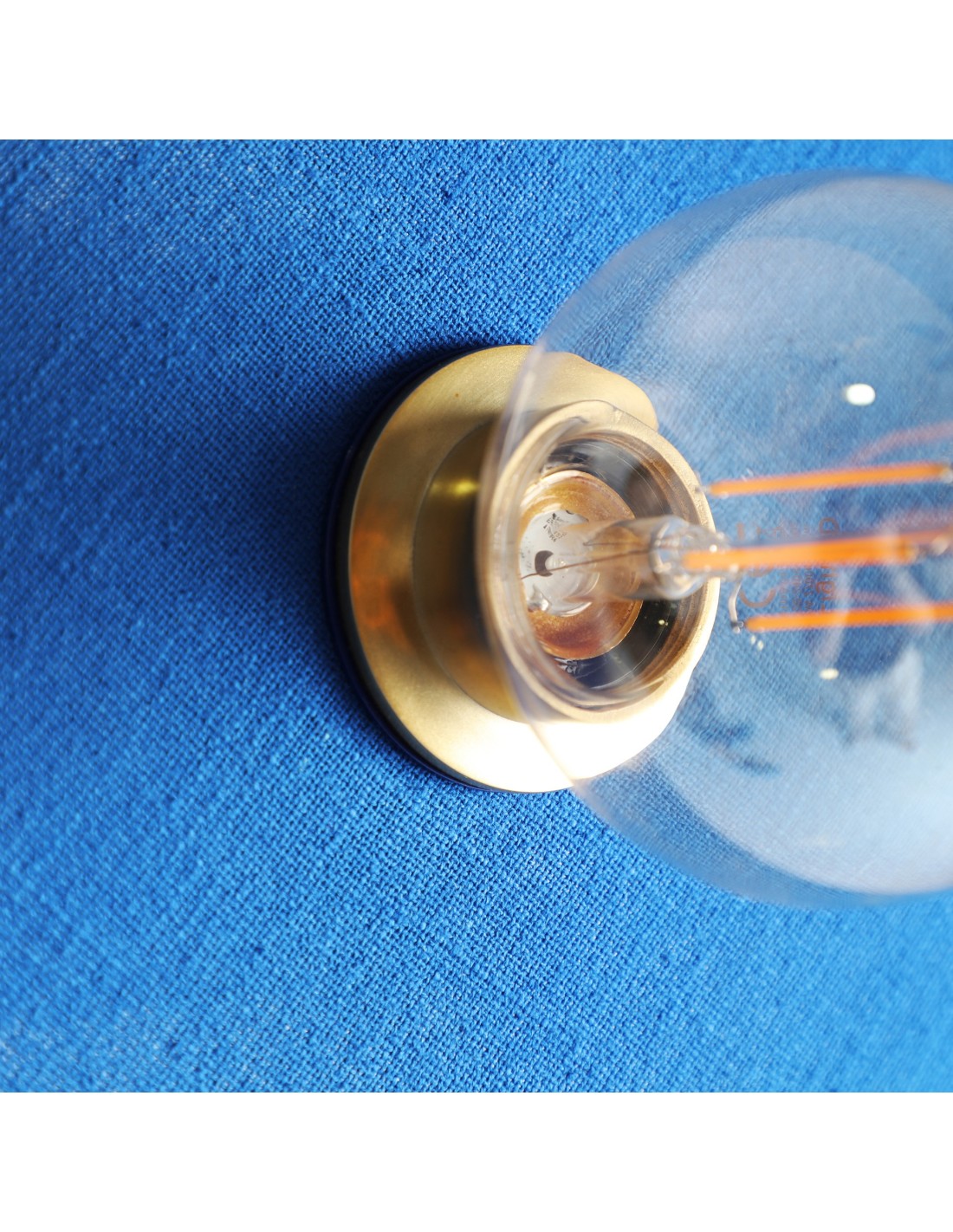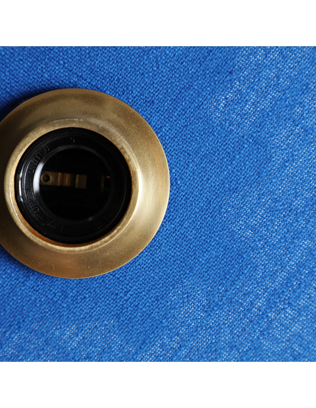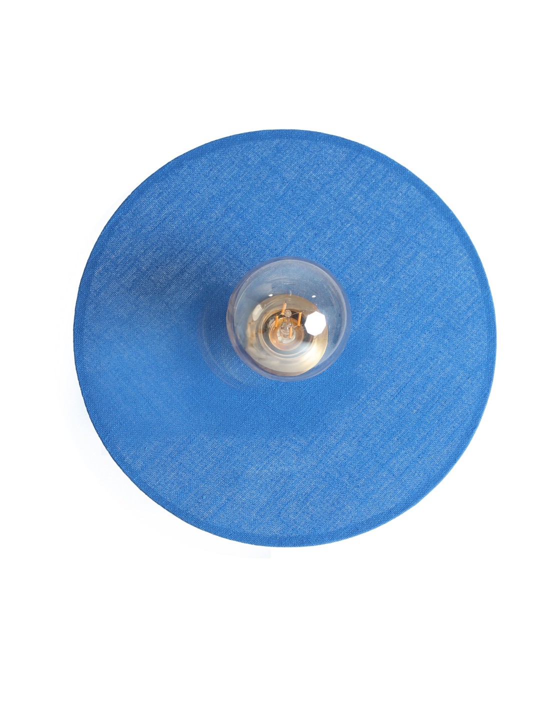 Aplique Vetra de estilo Contemporáneo, fabricado en algodón color azul, combinado con aluminio acabado dorado y hierro en negro.