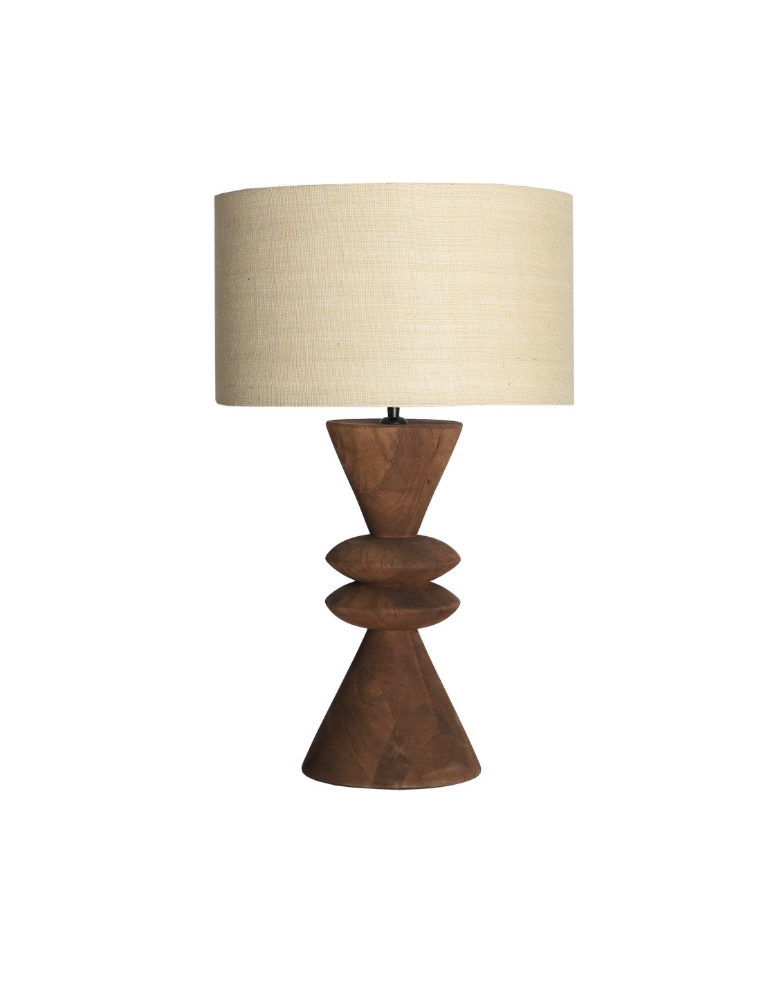 Lámpara de sobremesa Shama de estilo Contemporáneo, fabricada en madera de mango color marrón, combinado con lino color beige. Producto desmontable.