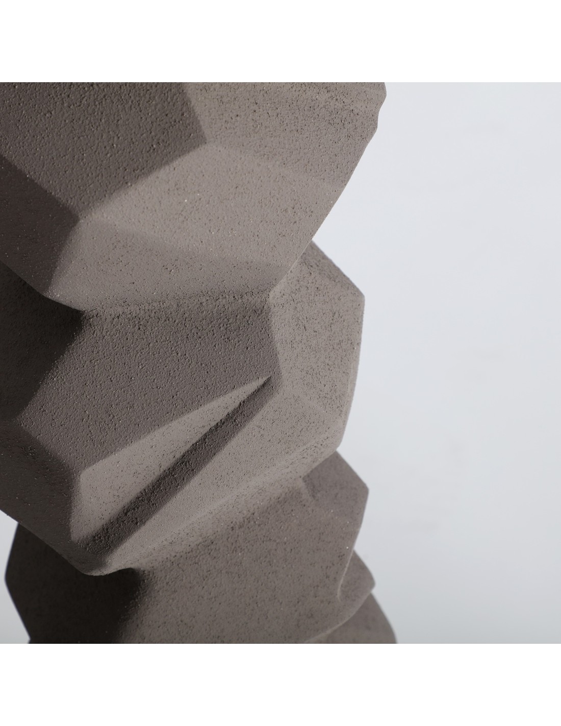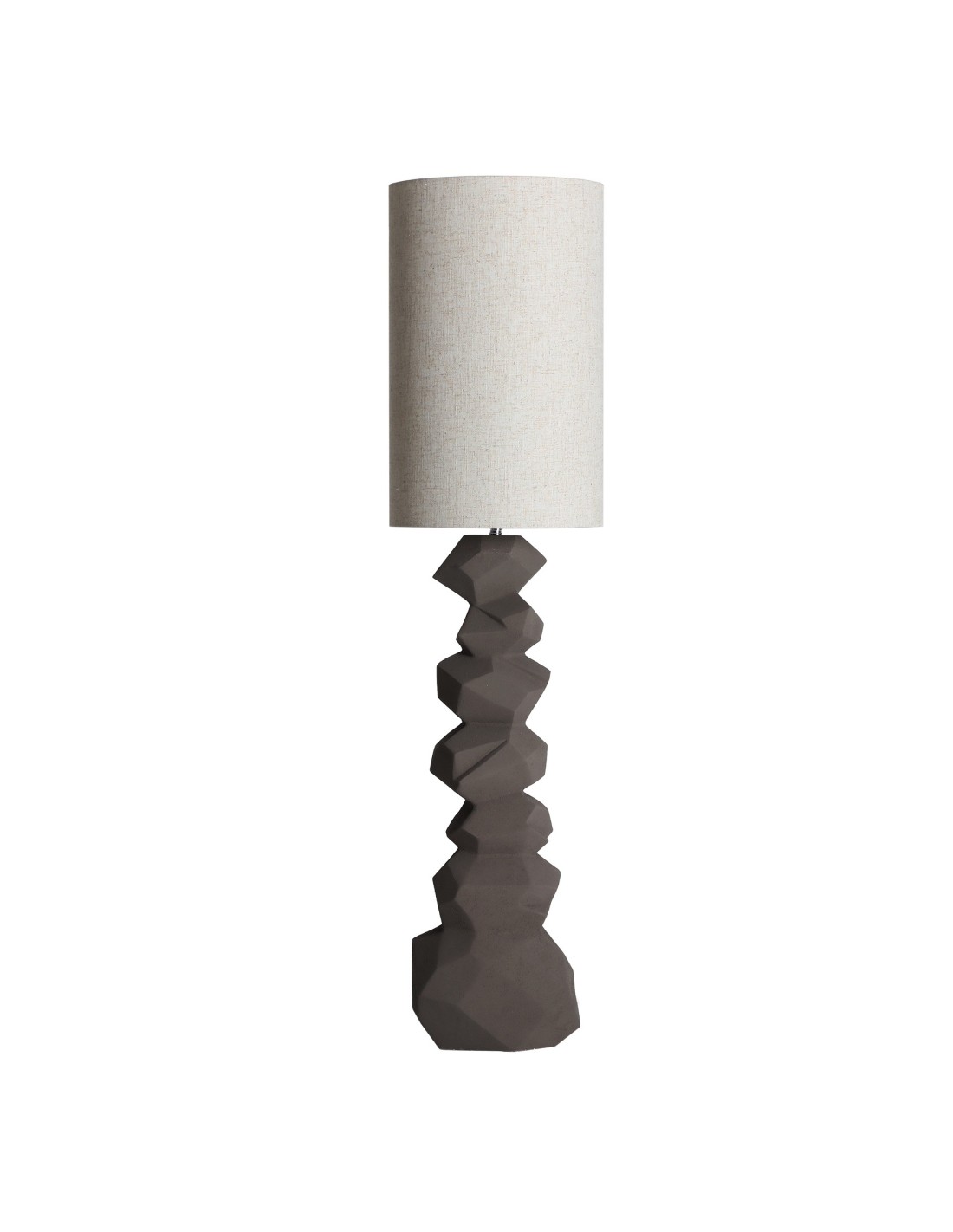 Lámpara de pie Pedra de estilo Contemporáneo, fabricada en cerámica color gris con acabado rugoso, combinado con poliéster color blanco roto. Producto desmontable.
