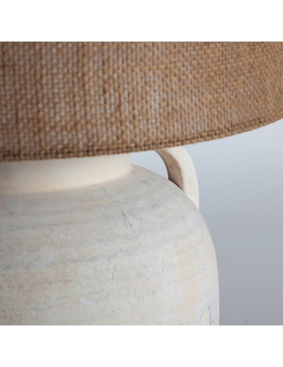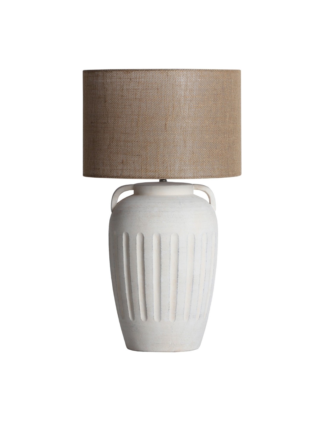 Lámpara de sobremesa Serhe de estilo Clásico, fabricada en cerámica color blanco roto, combinado con poliéster color marrón. Producto desmontable.