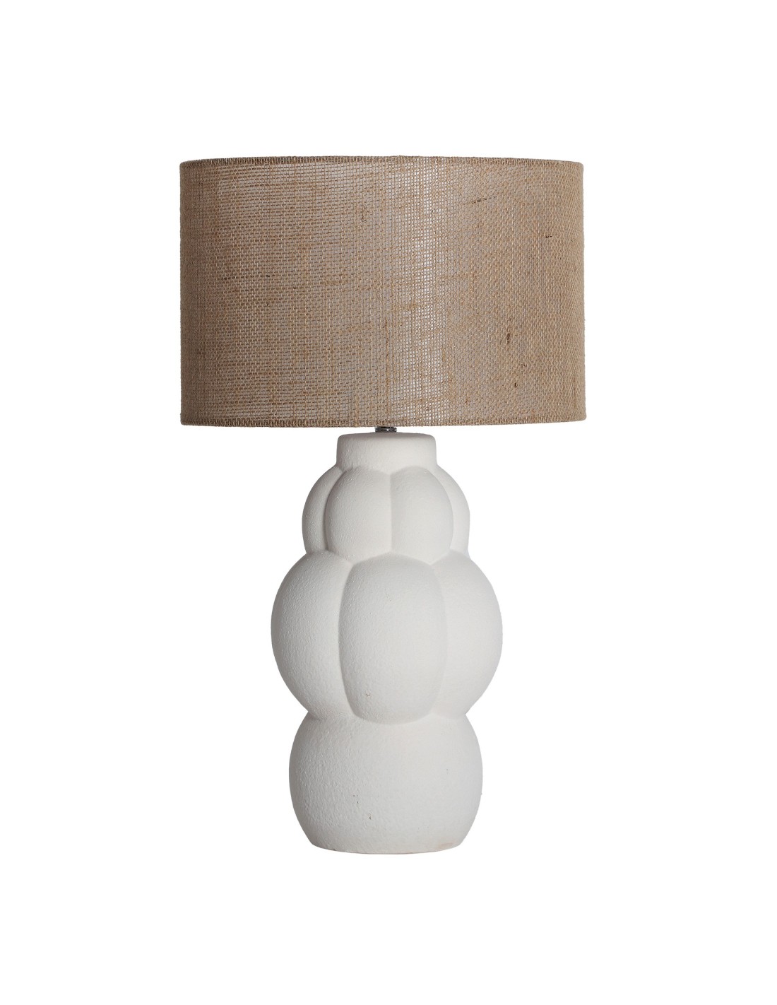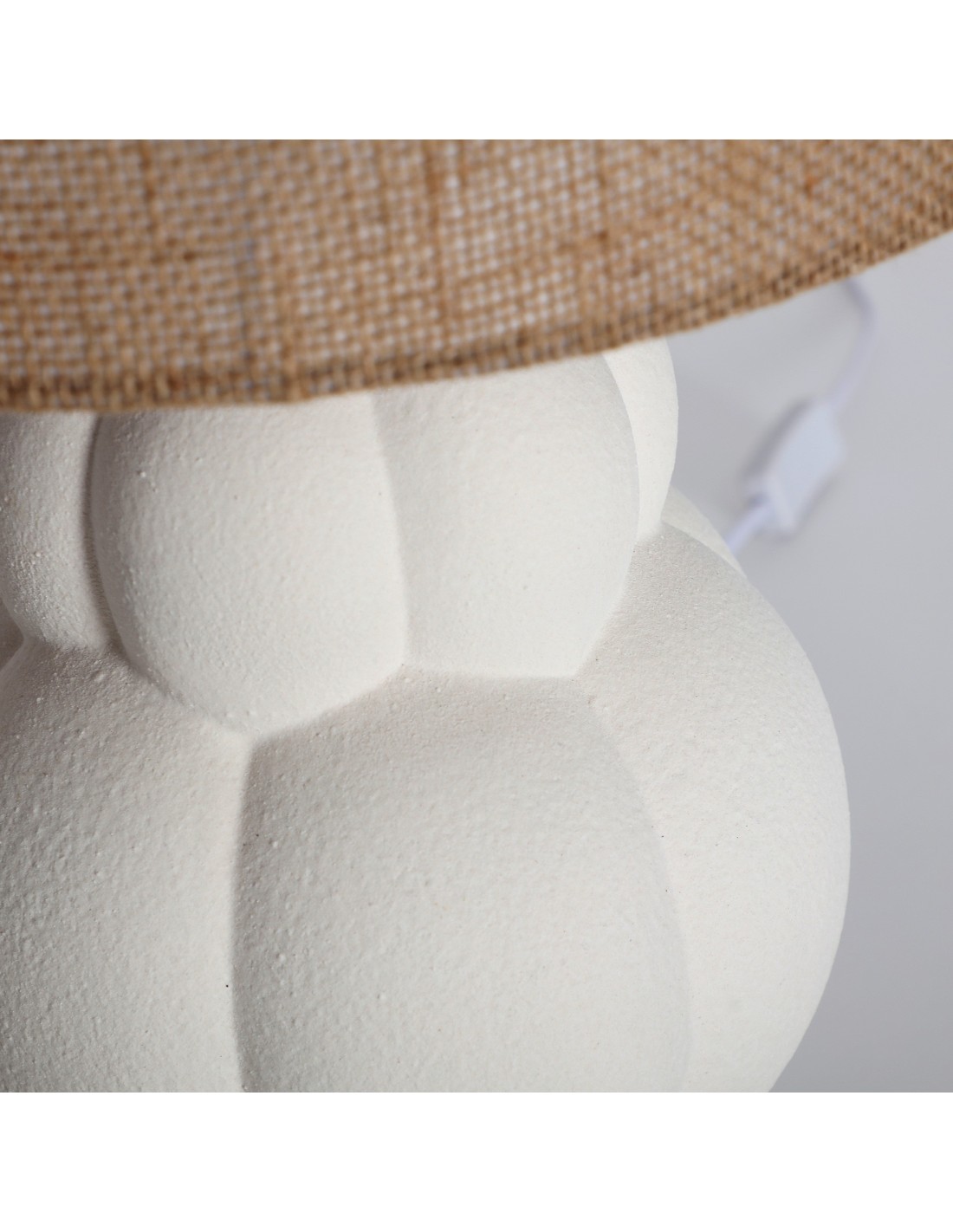 Lámpara de sobremesa Bulla de estilo Contemporáneo, fabricada en cerámica color blanco roto, combinado con poliéster color marrón. Producto desmontable.