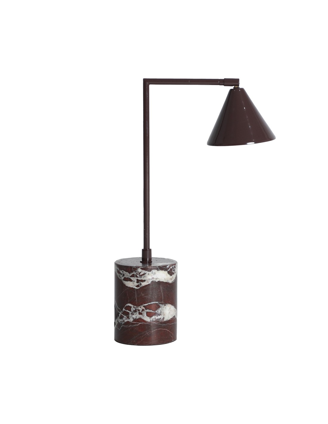 Lámpara de sobremesa Nero de estilo Moderno, fabricada en hierro color chocolate, combinado con mármol sintético a tono con acabado veteado.