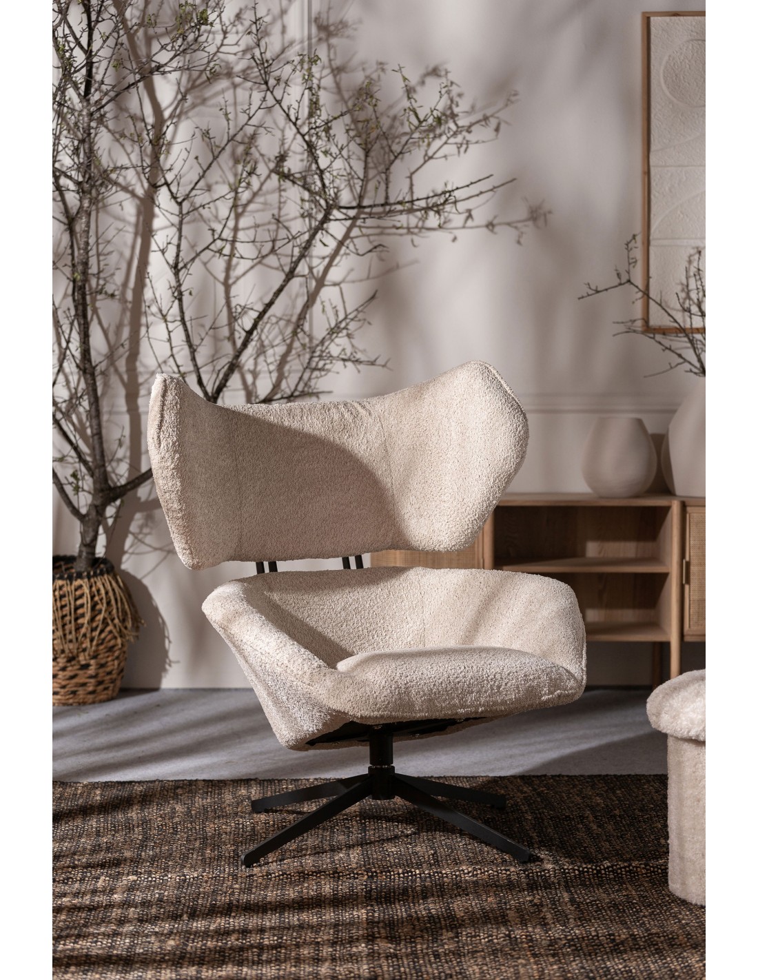 Sillón Giratorio Bouclé PRIVAS, Algodón Bouclé / Crema - Kodu Home Design