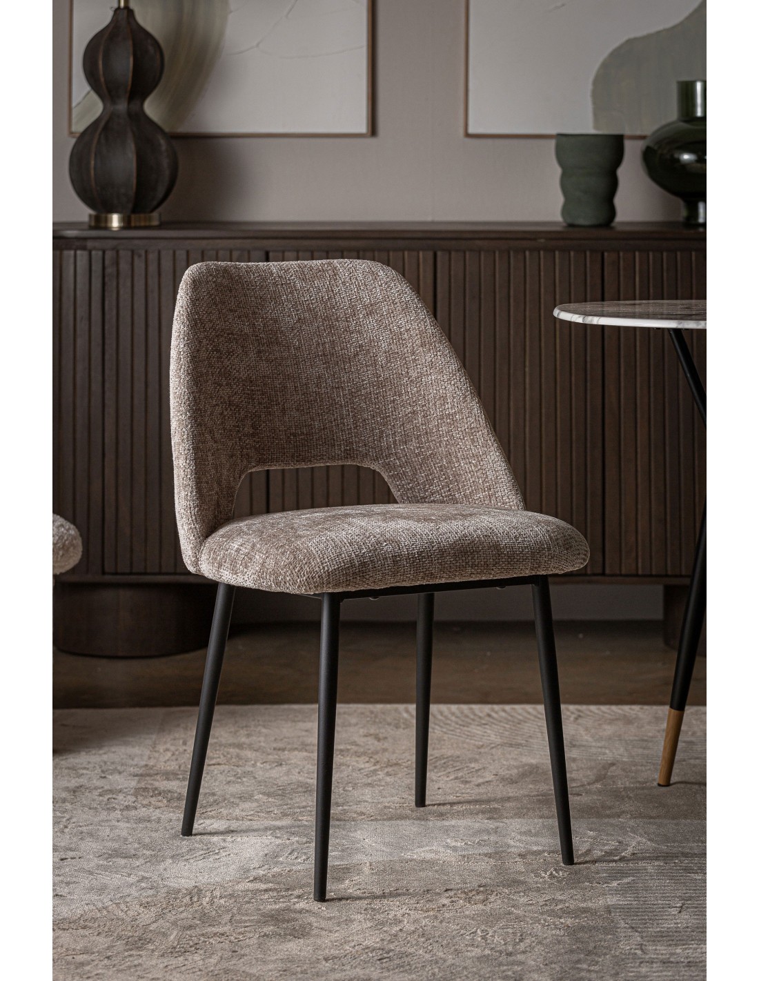 Silla LEYNHAC, Poliéster / Beige, Negro - Kodu Home Design