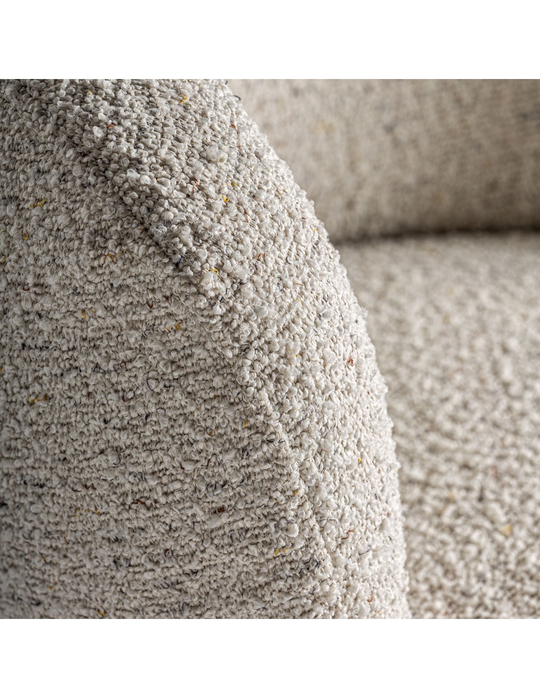 Materiales: Algodón Bouclé, Hierro, Madera de Caucho.